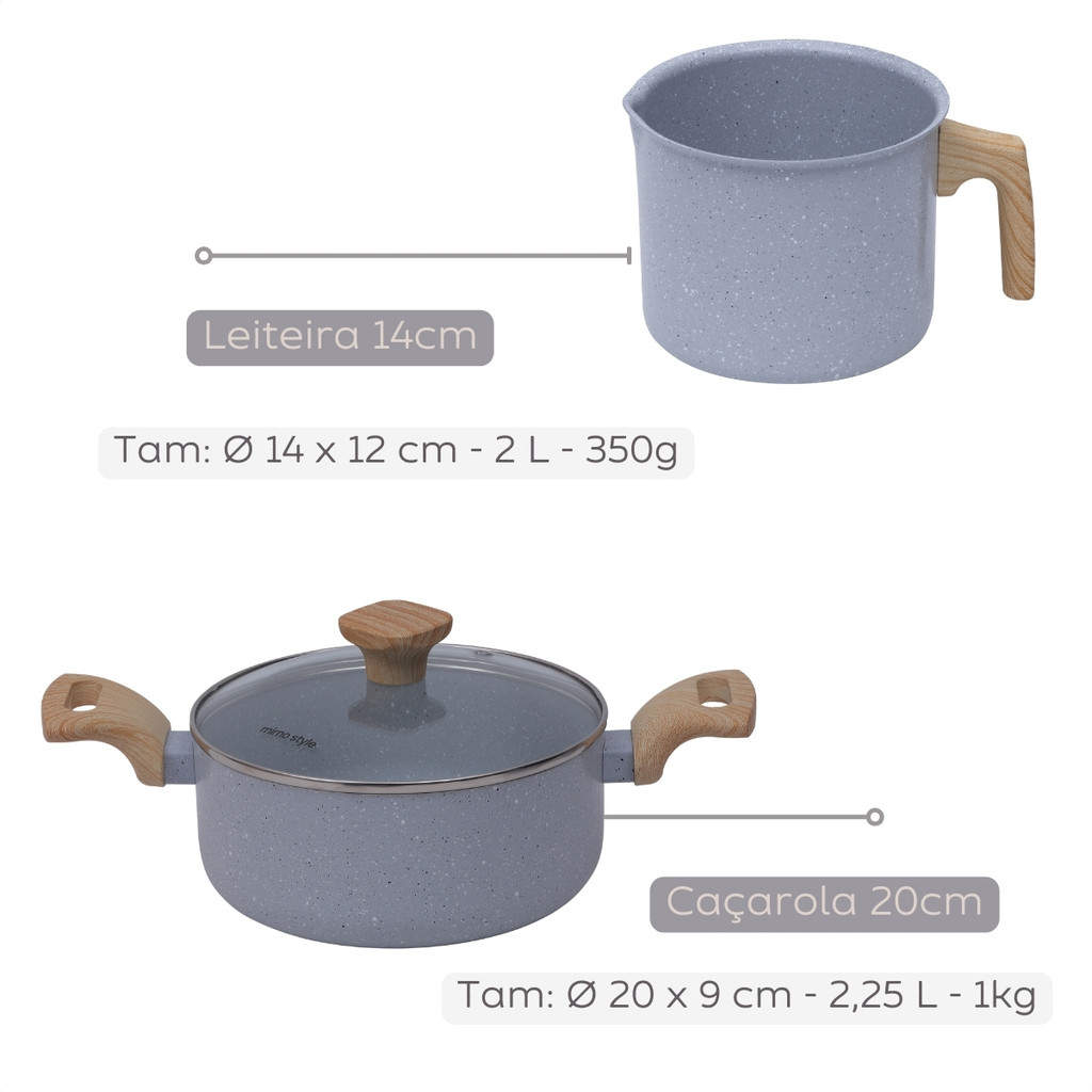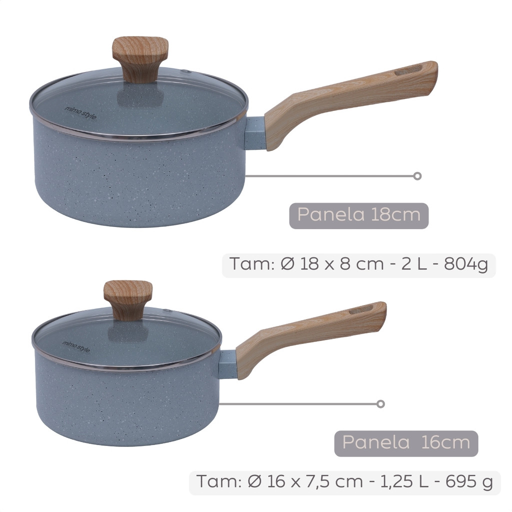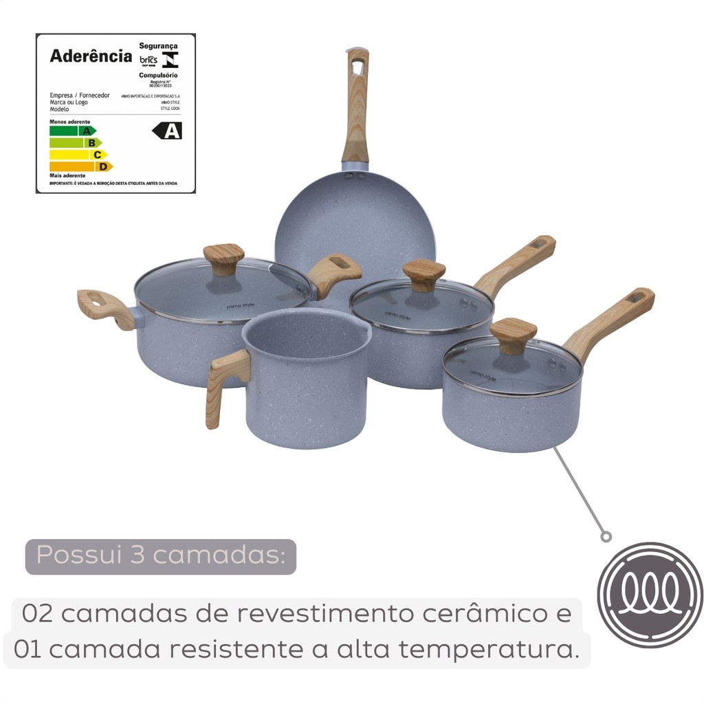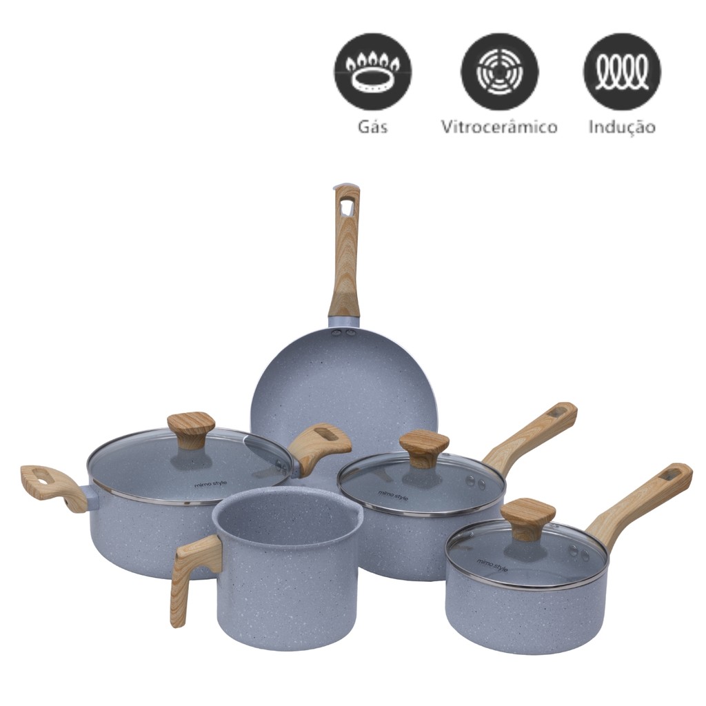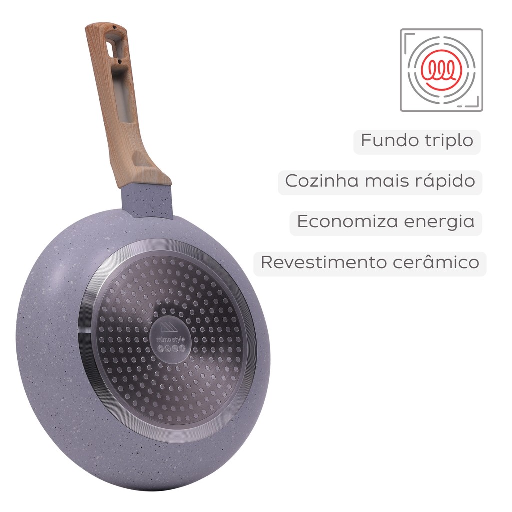 Jogo de Panela Ceramica 5 Peças Frigideira Antiaderente Indução Fundo Triplo