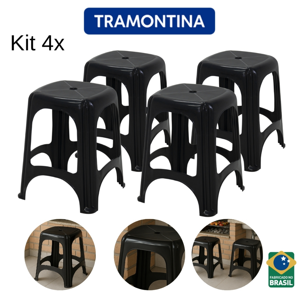 Kit 4 Peças Banquetas Niteroi Cor Preta Tramontina Até 100kg