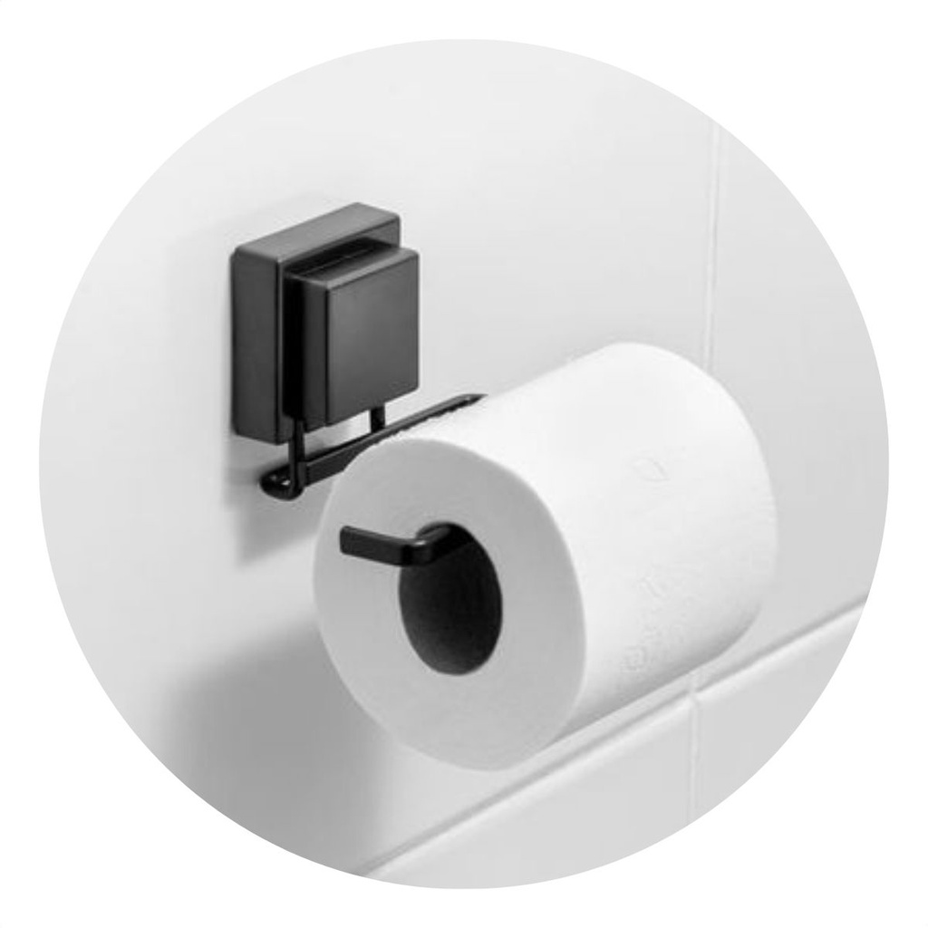 Porta Papel Higiênico Suporte com Fixação Ventosa Sem Furo Pratico Preto Fosco Future