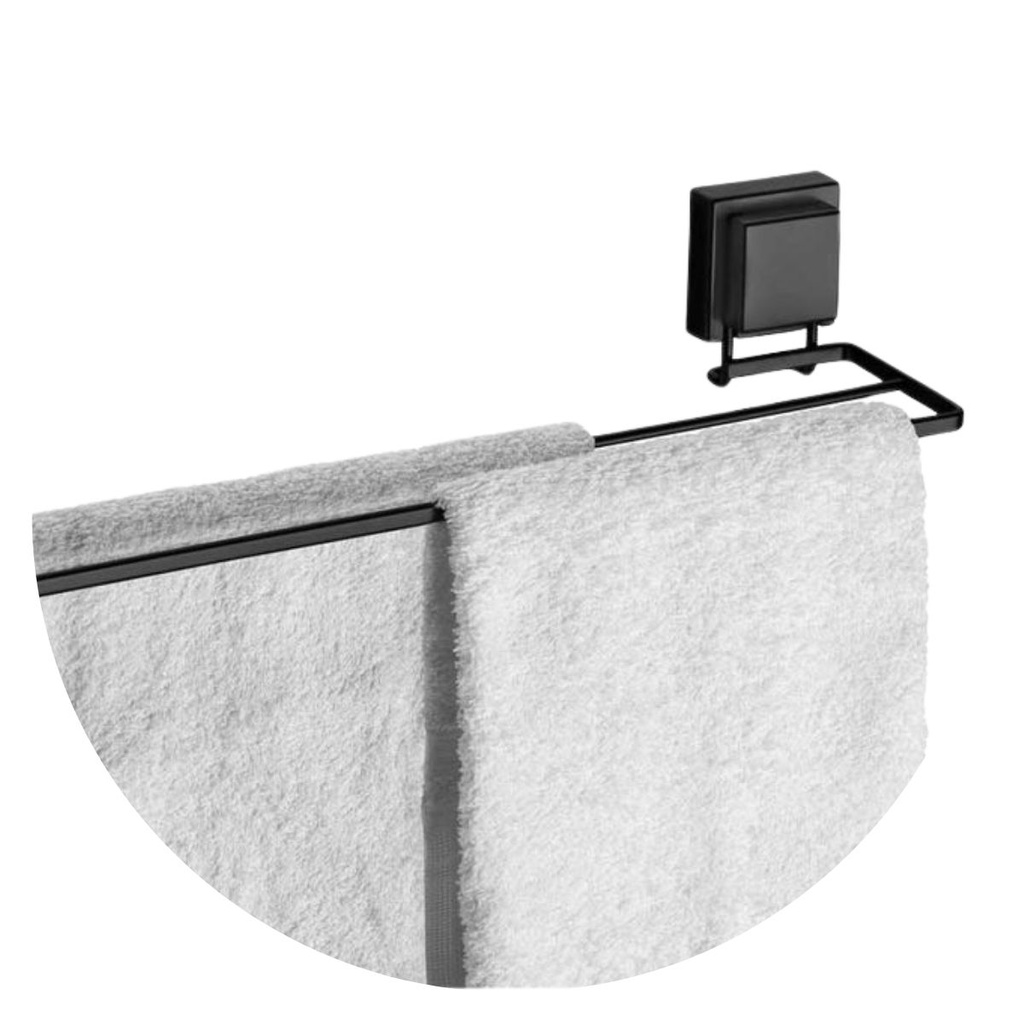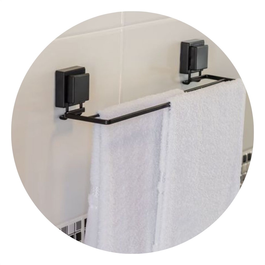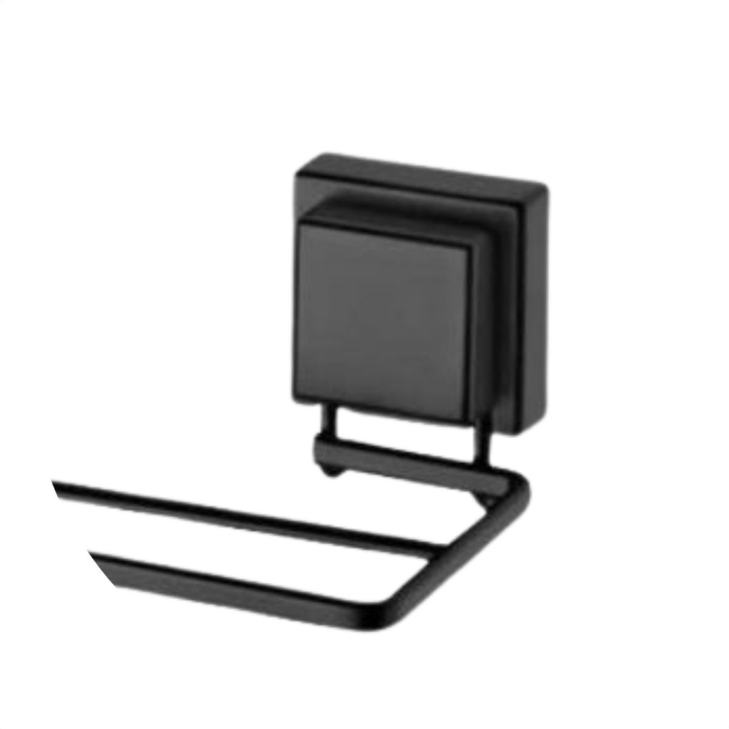 Toalheiro Porta Toalha com Ventosa Duplo em Aço Carbono Preto Fosco Sem Furo Future