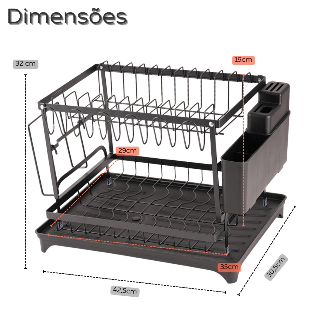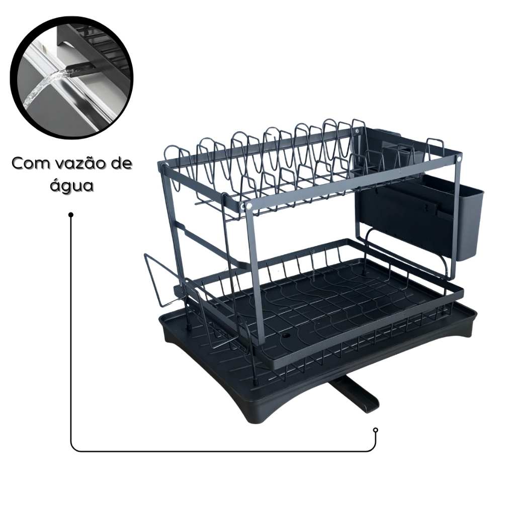 Escorredor de Louça Organizador Desmontável 2 Andares Ralo Ajustavel