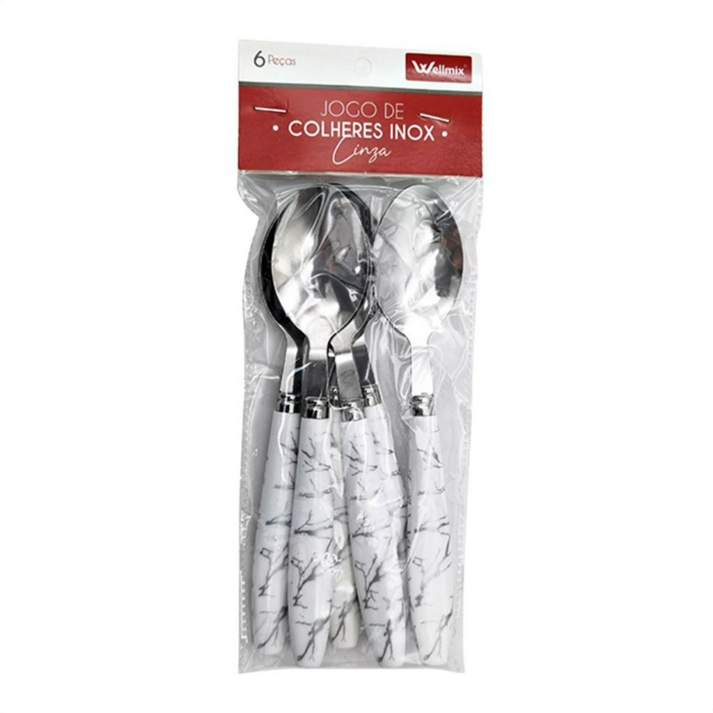 Kit Jogo Conjunto de Colheres em Aço Inox com Cabo Plástico Resistente Wellmix