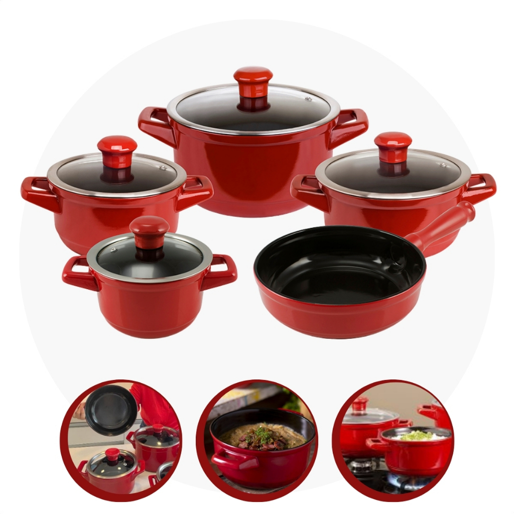 Jogos De Panelas Cerâmica com Tampa De Vidro 5 Peças Resistente