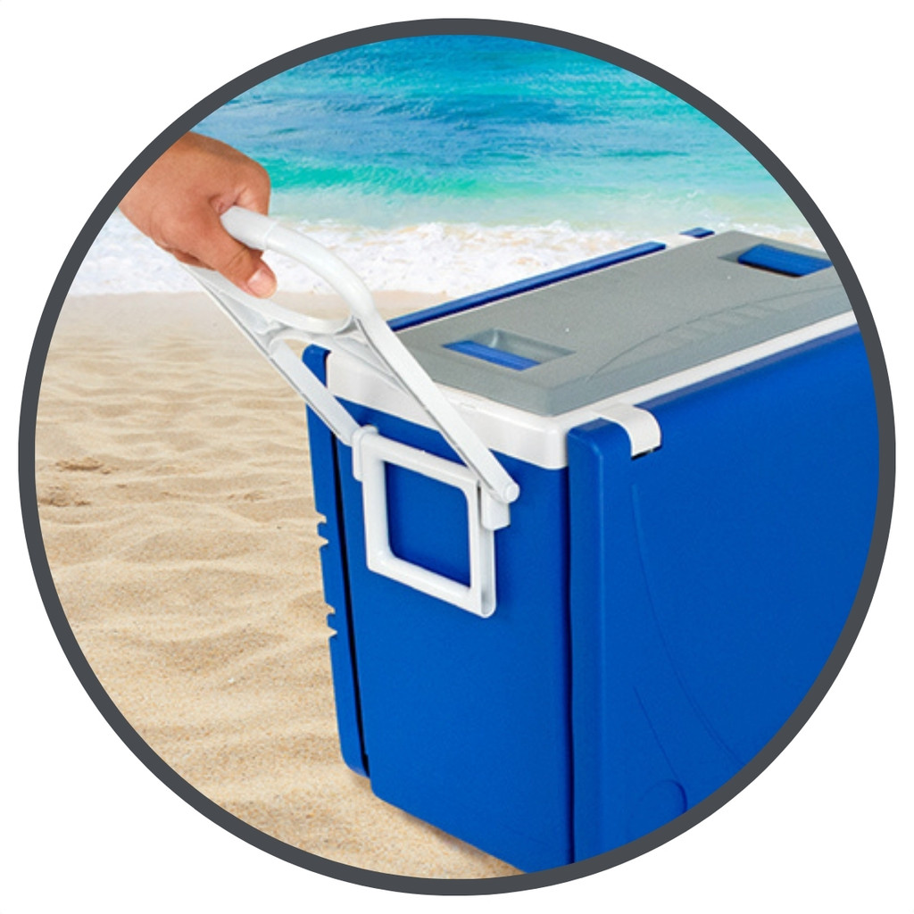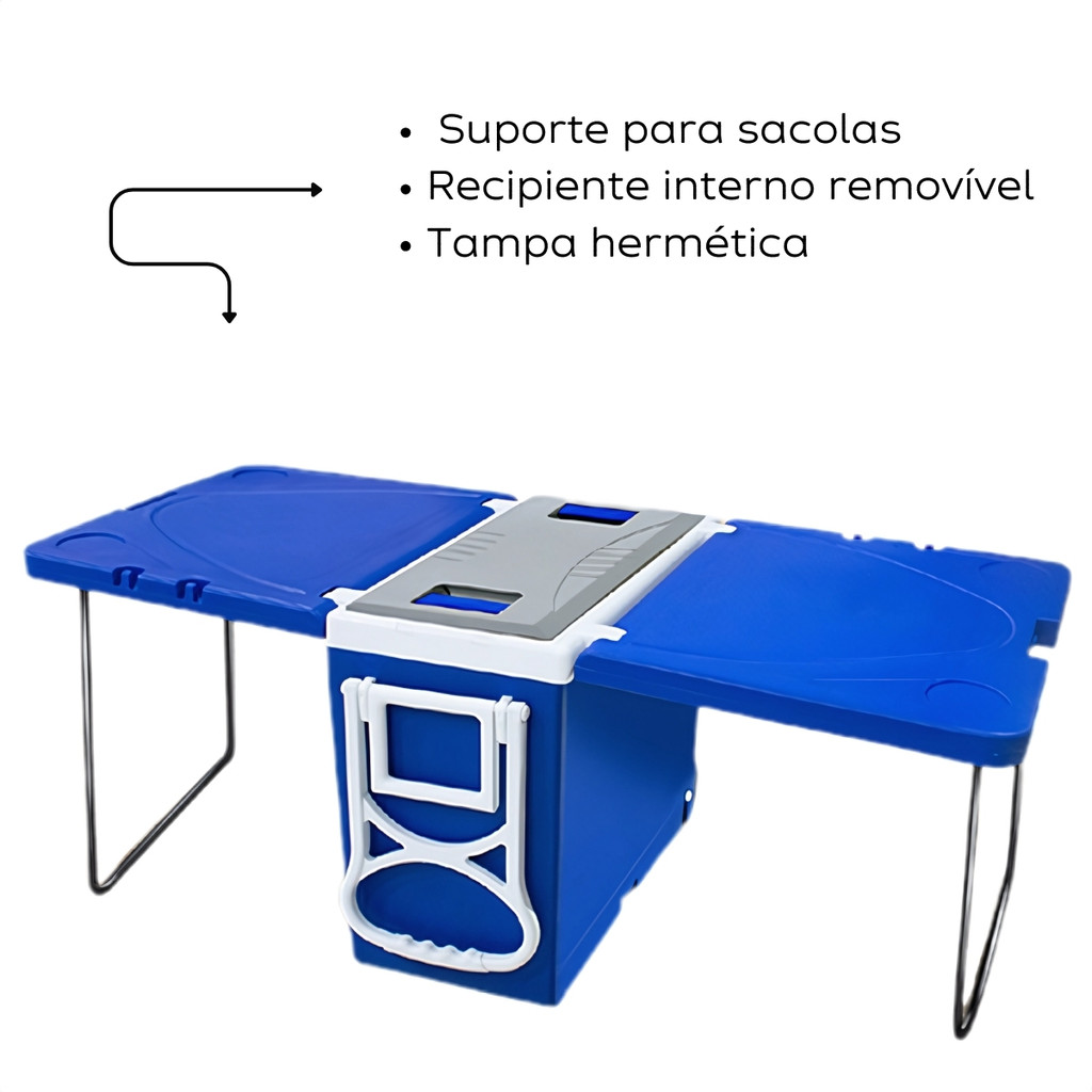 Cooler Caixa Termica 32 Litros Mesa Multifuncional 3 x 1 Rodinhas e Alça Transporte