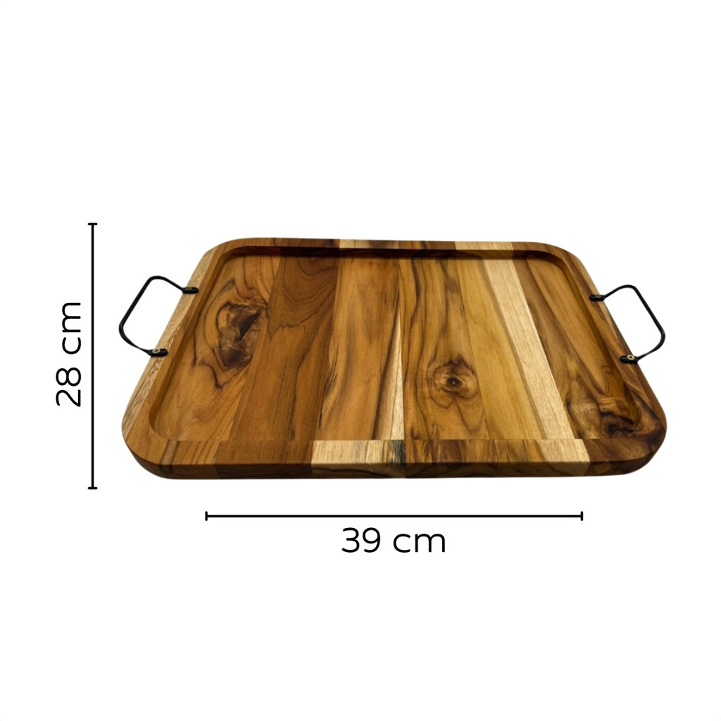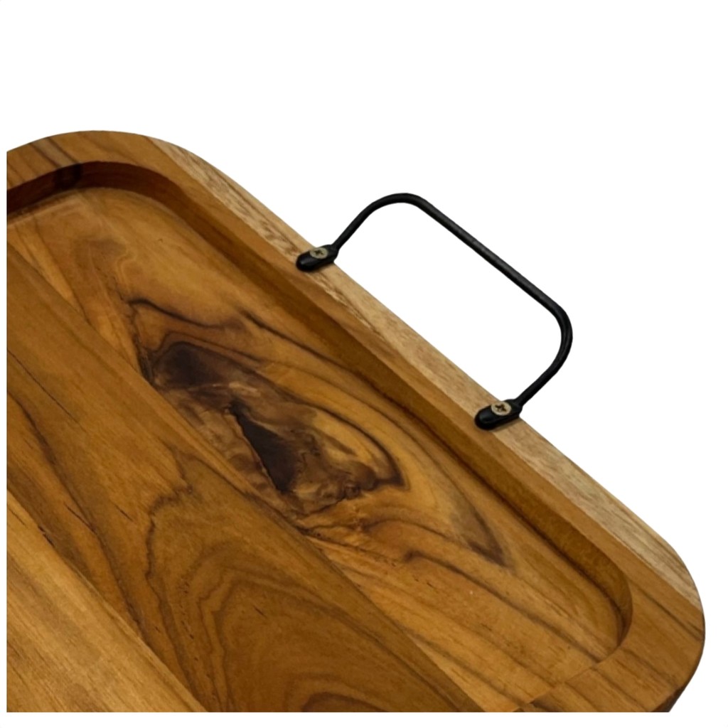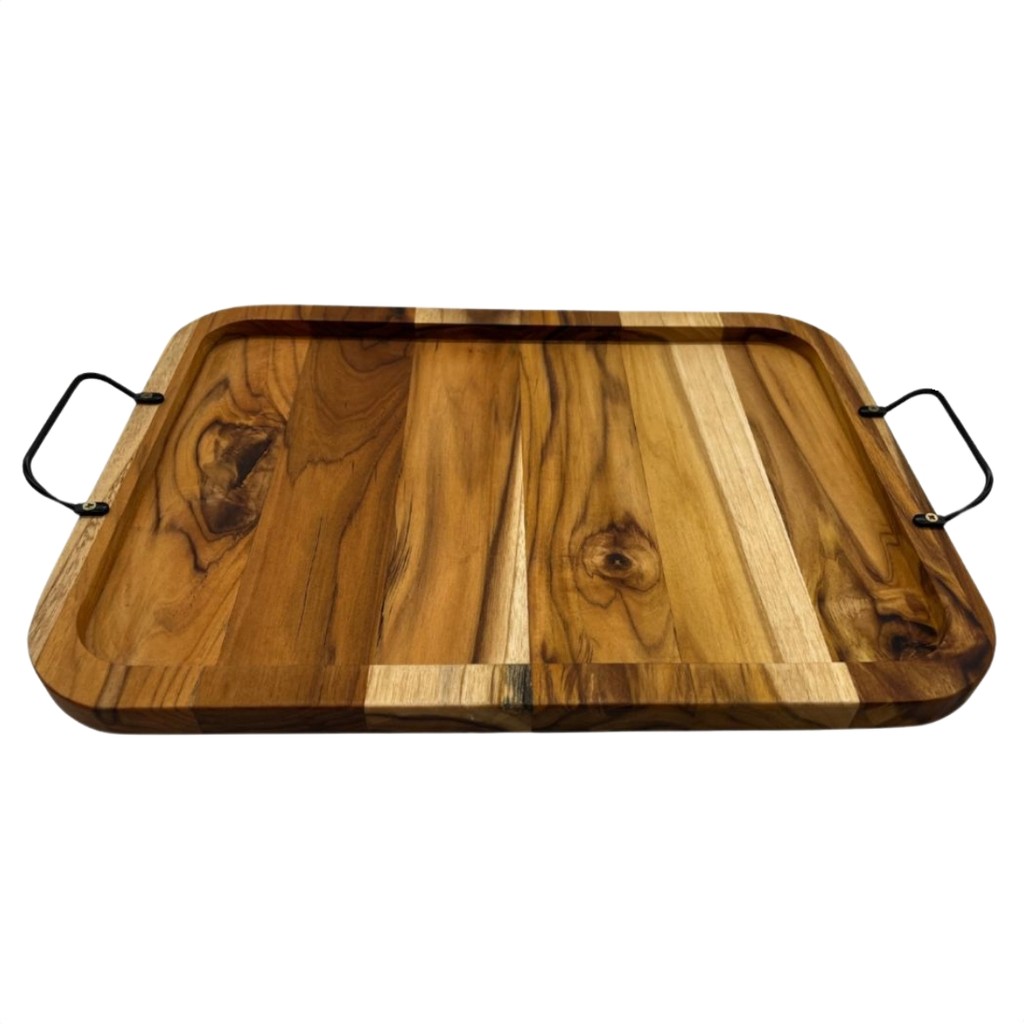 Tabua Bandeja Retangular de Madeira Teca com Alça para Petiscos