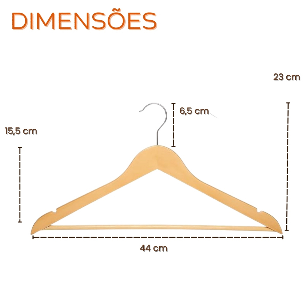 Kit 10/20/30/50 Cabides De Madeira Marfim Para Roupas Calça Gancho Cromado