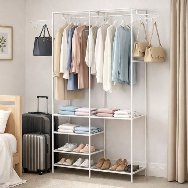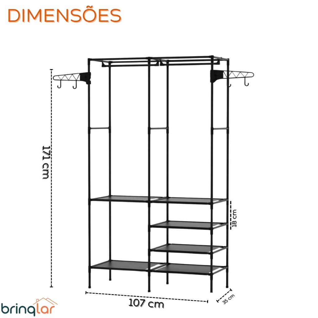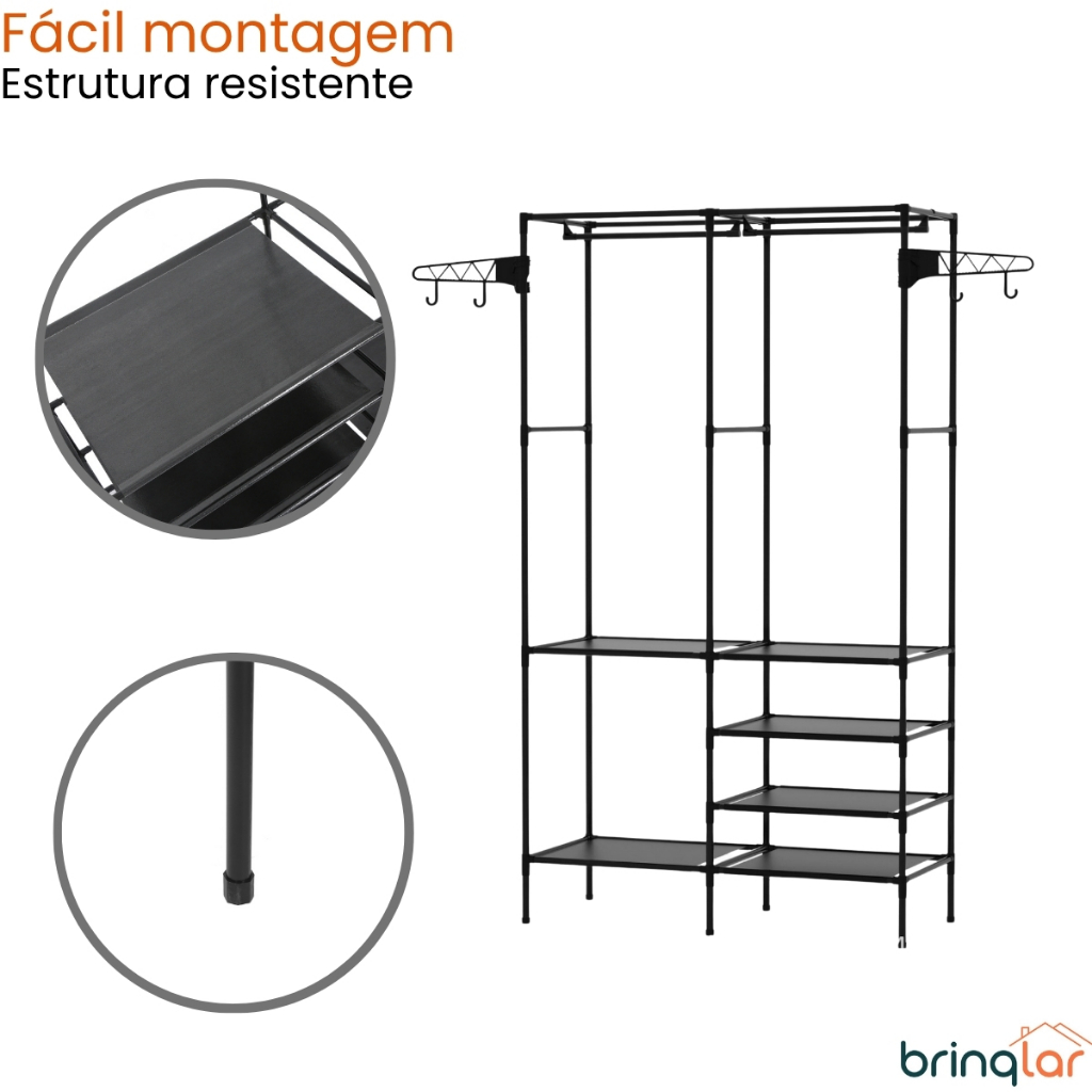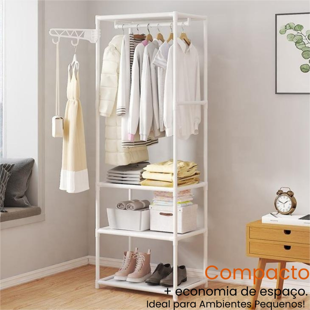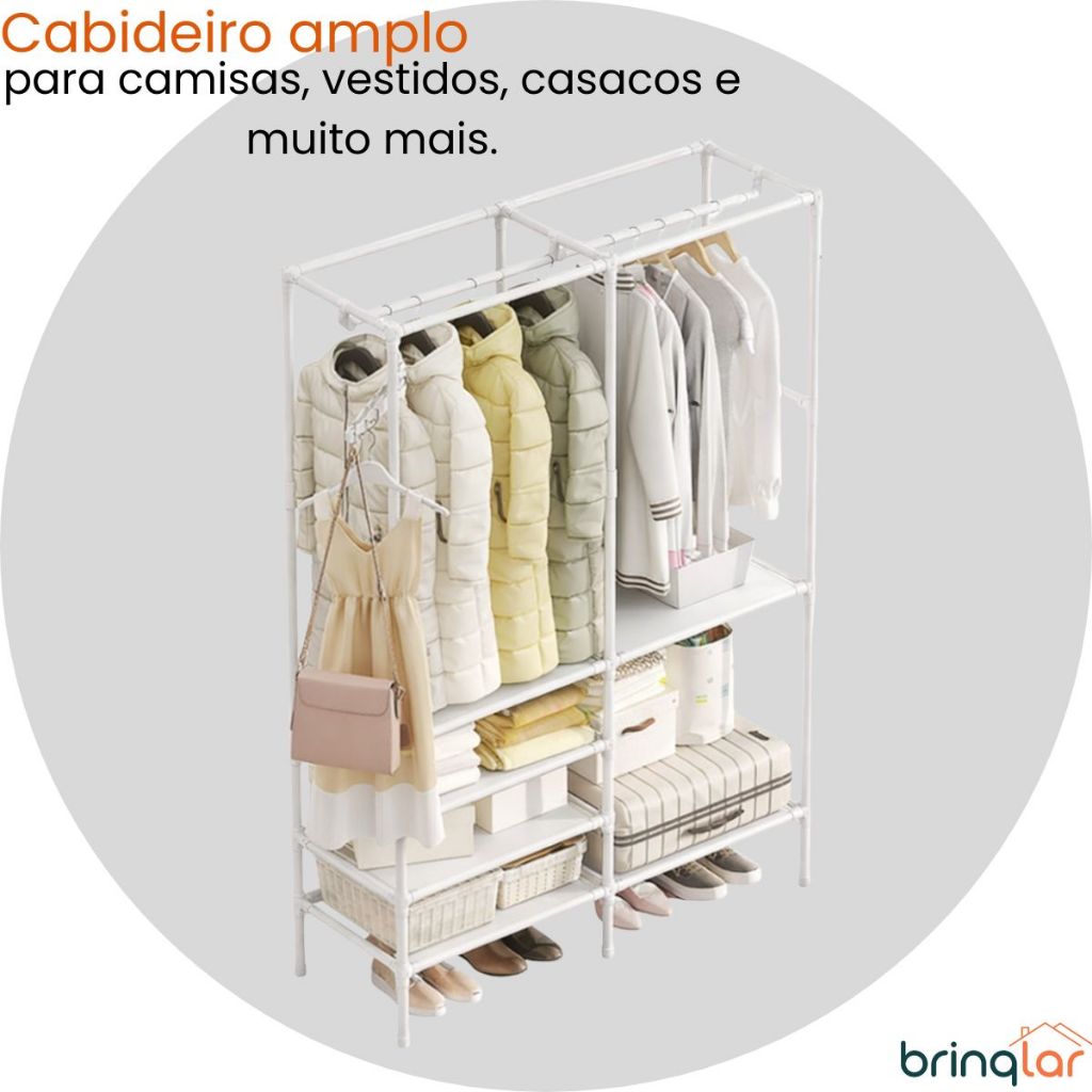 Guarda Roupa Portátil Arara Multifuncional com Cabideiro e Sapateira