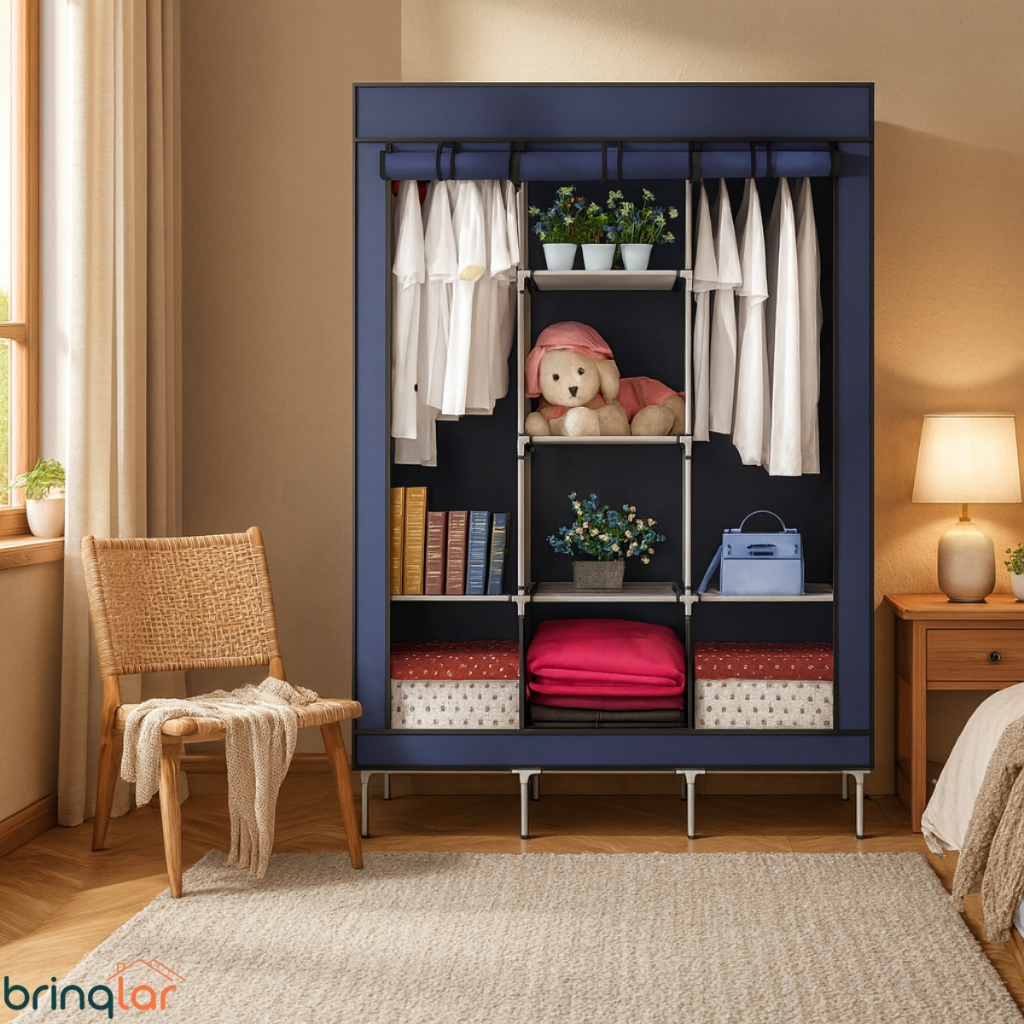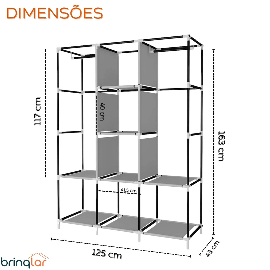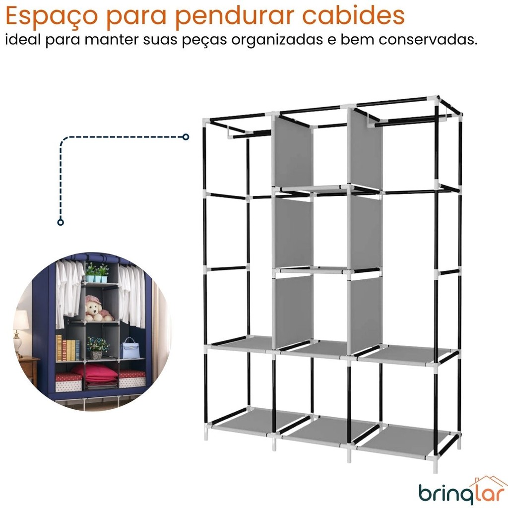 Guarda Roupa Armario Portátil com Prateleiras Capa Proteção BrinqLar