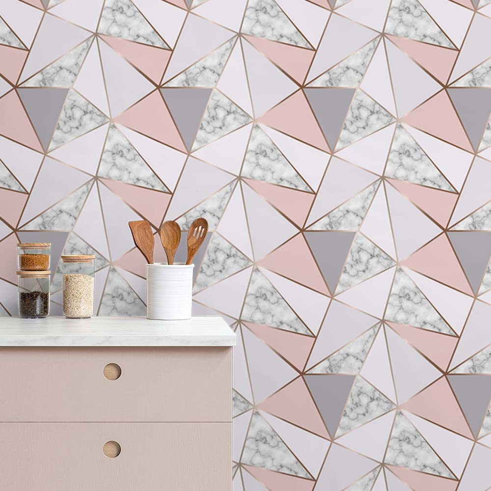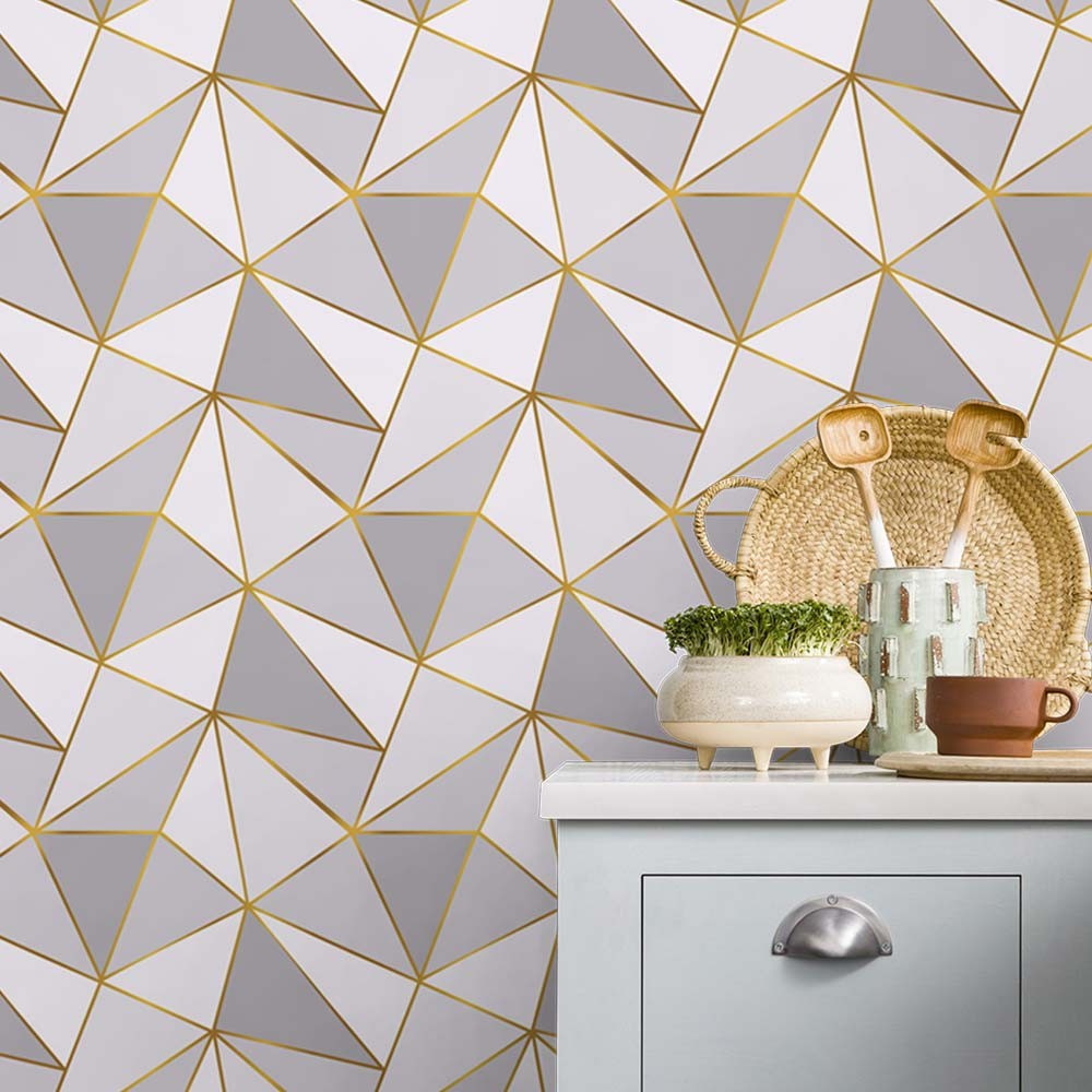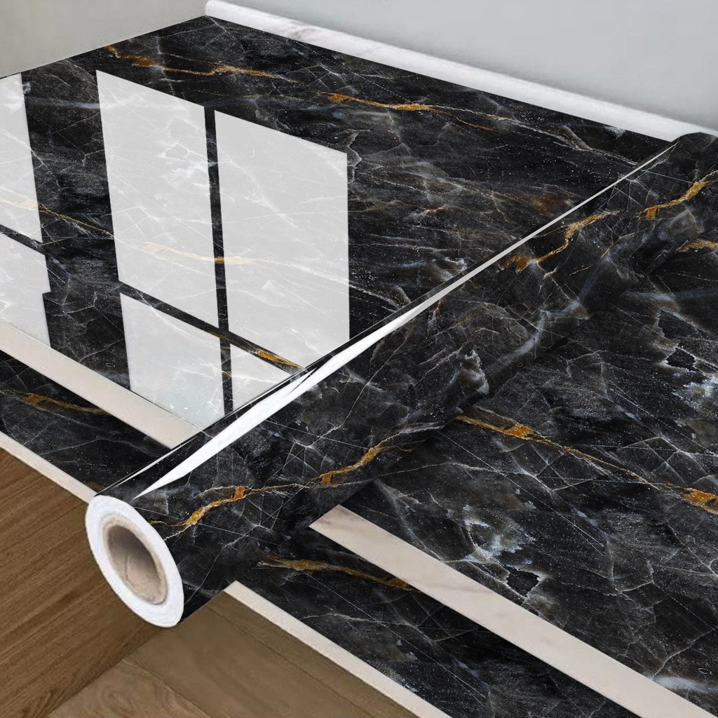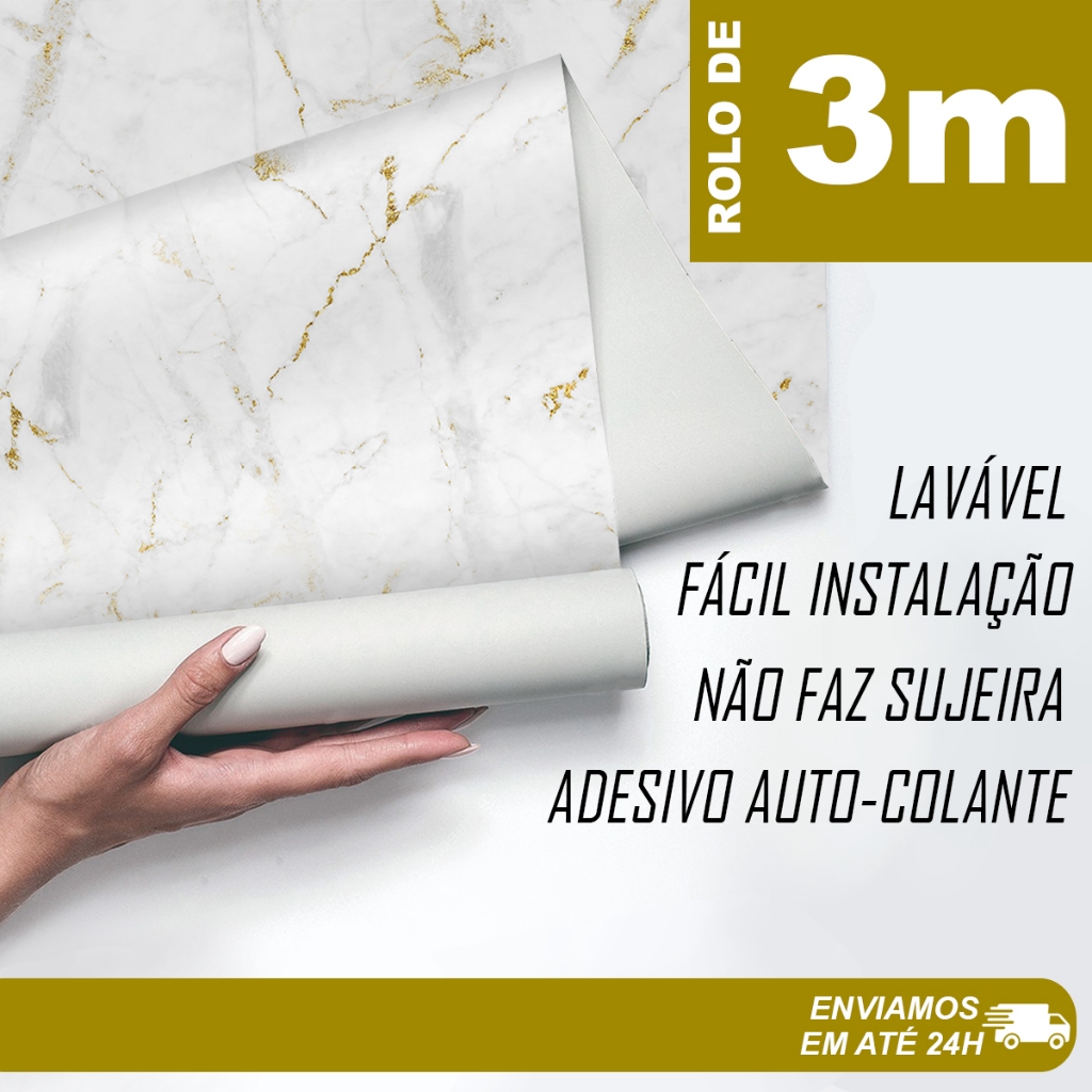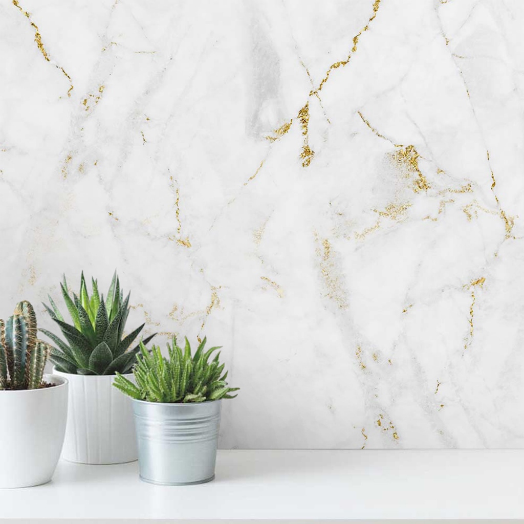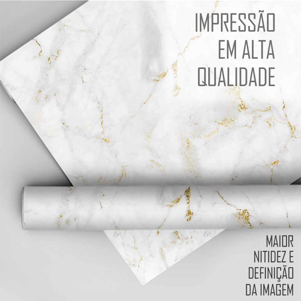 Papel de Parede Adesivo Para Cozinha Lavável Mármore Branco e Dourado Premium - 50cm x 3M