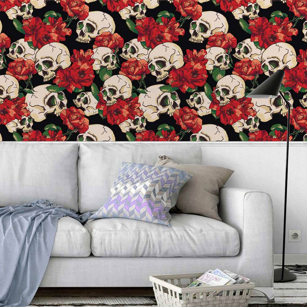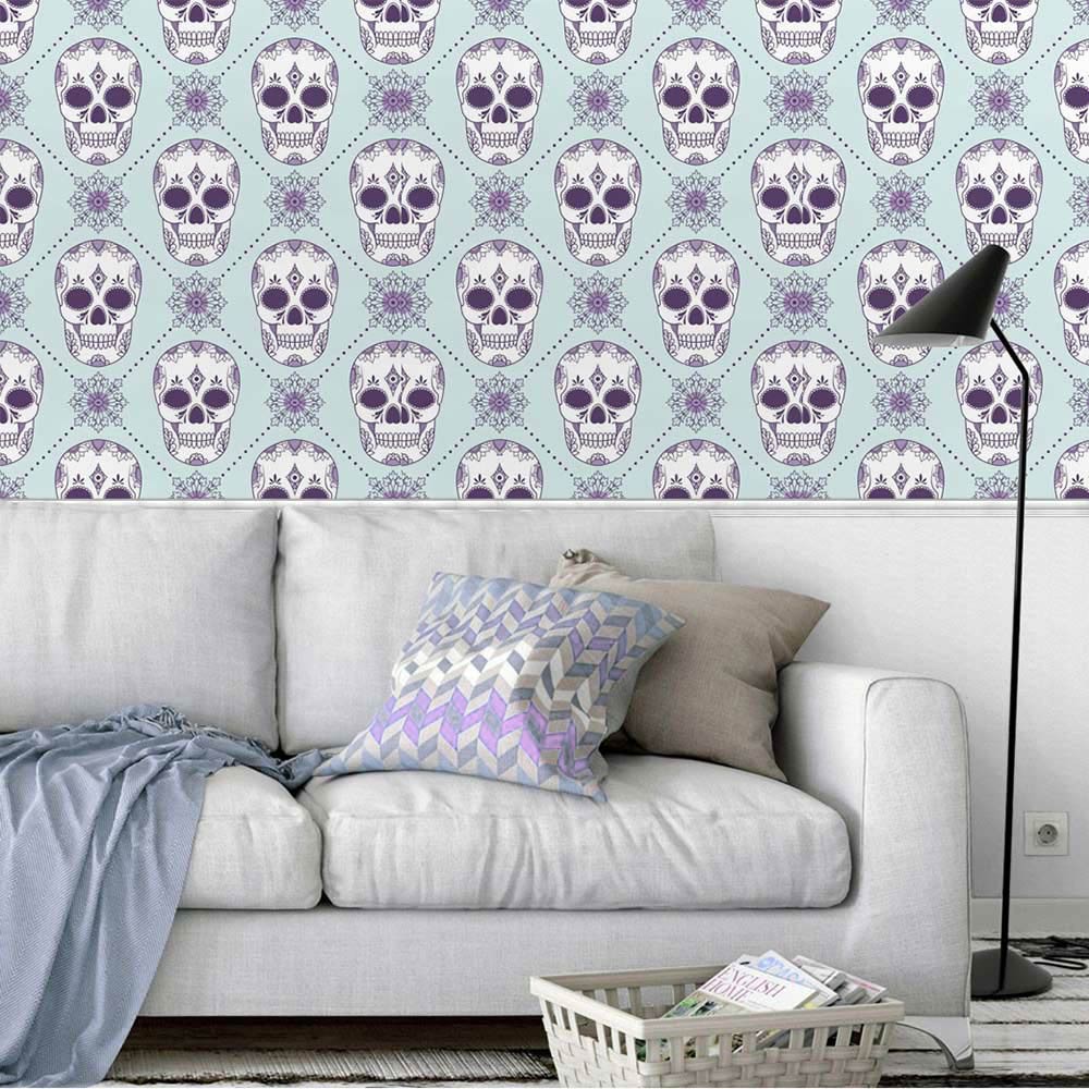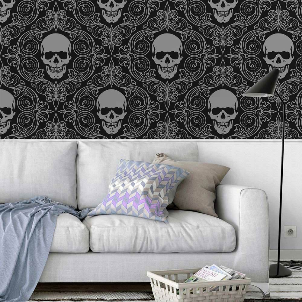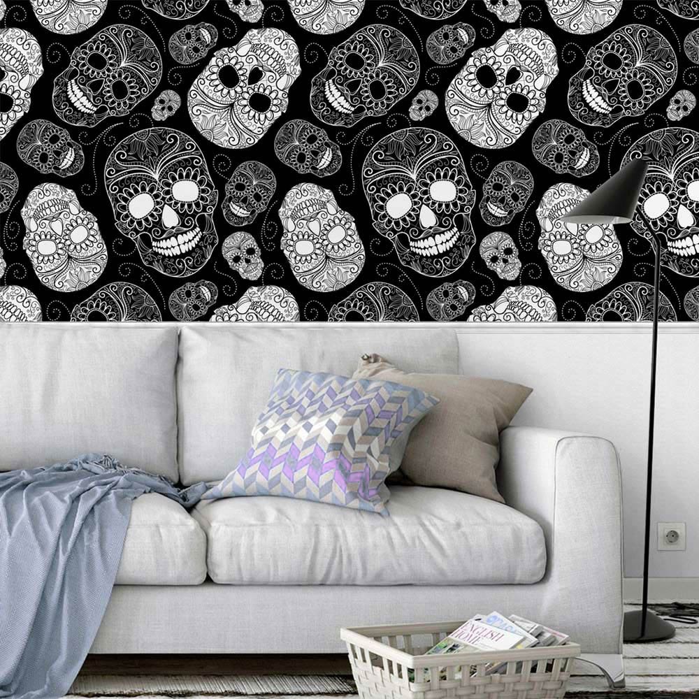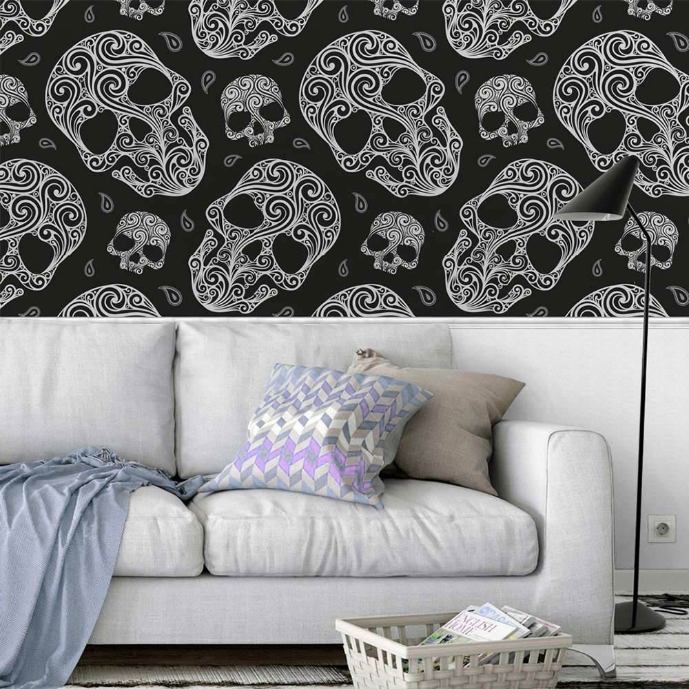 Papel de Parede Adesivo Vinílico Caveira (Rolo 1m x 50cm)