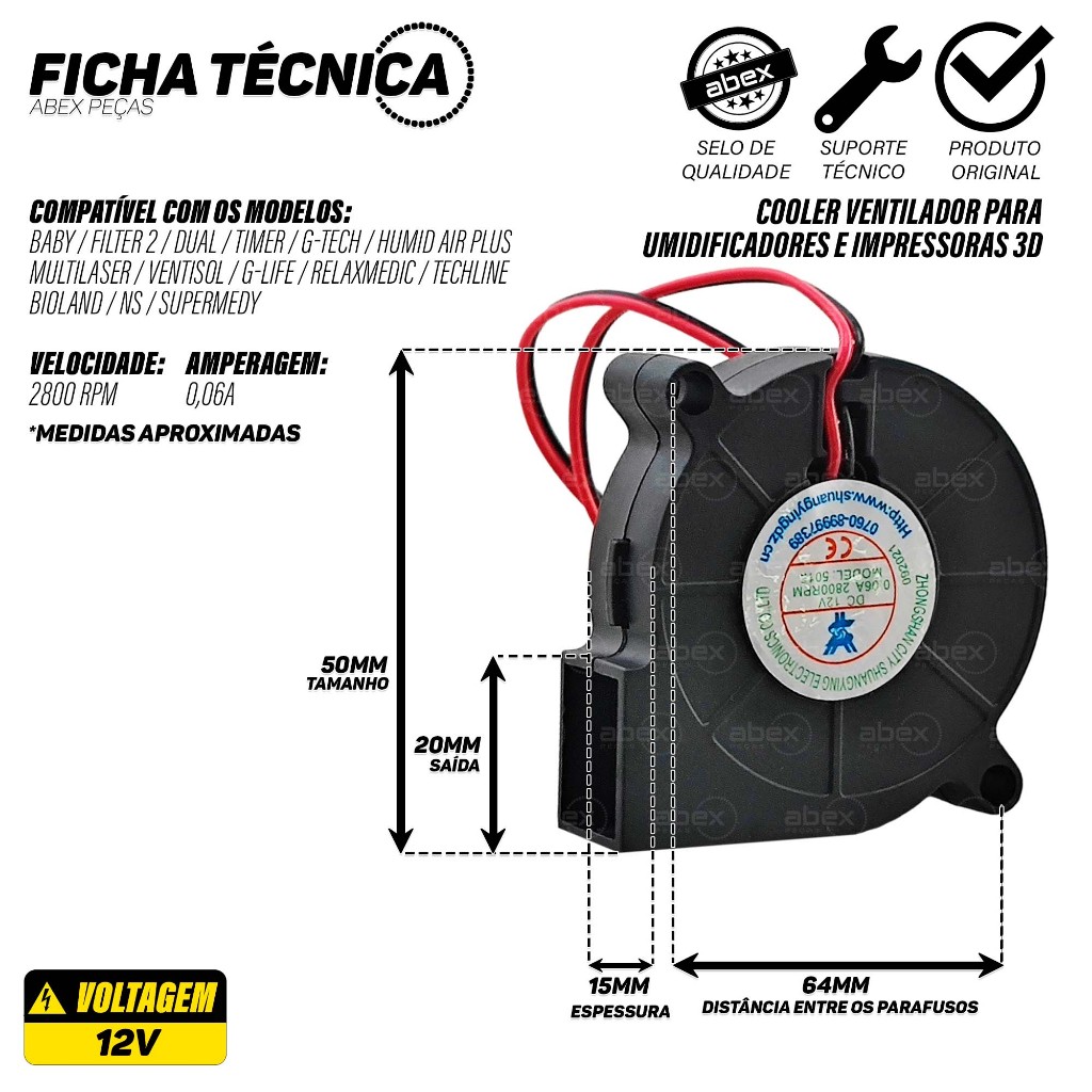 Ventoinha 12v Radial Cooler Exaustor 5015 Para Umidificador G-TECH Ventisol Multilaser e Impressoras 3D