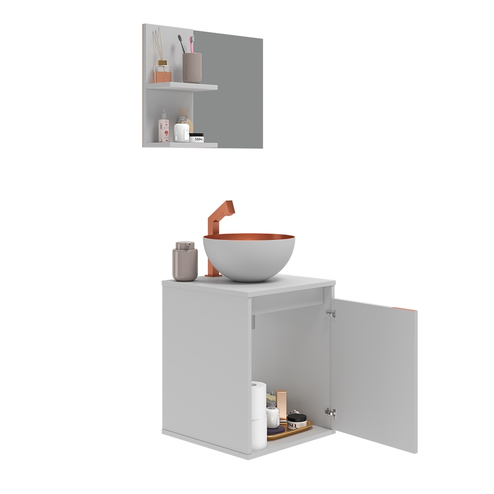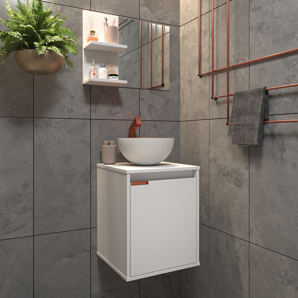 Gabinete Banheiro Completo Cuba Espelheira Espelho Decoração Vintage Madeira Puxadores Terracota