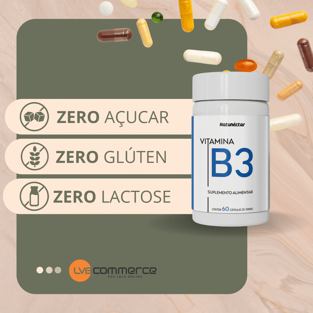 Kit Combo 2X Vitamina B3 120 Cápsulas Niacina Niacinamida Natunéctar