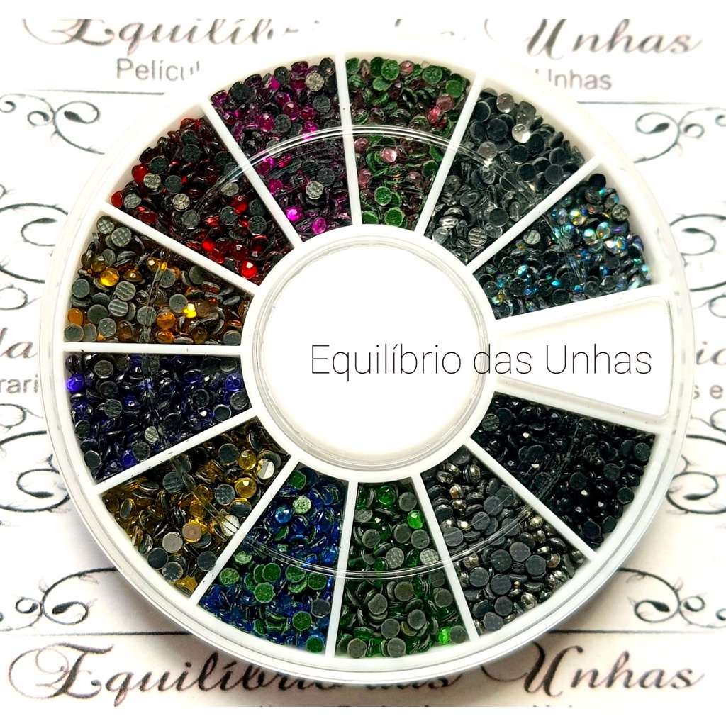 Disco Pedrarias para unhas Strass 1,8 e 2mm 12 divisórias joias e nail art acessórios make artesanto colagem termocolant