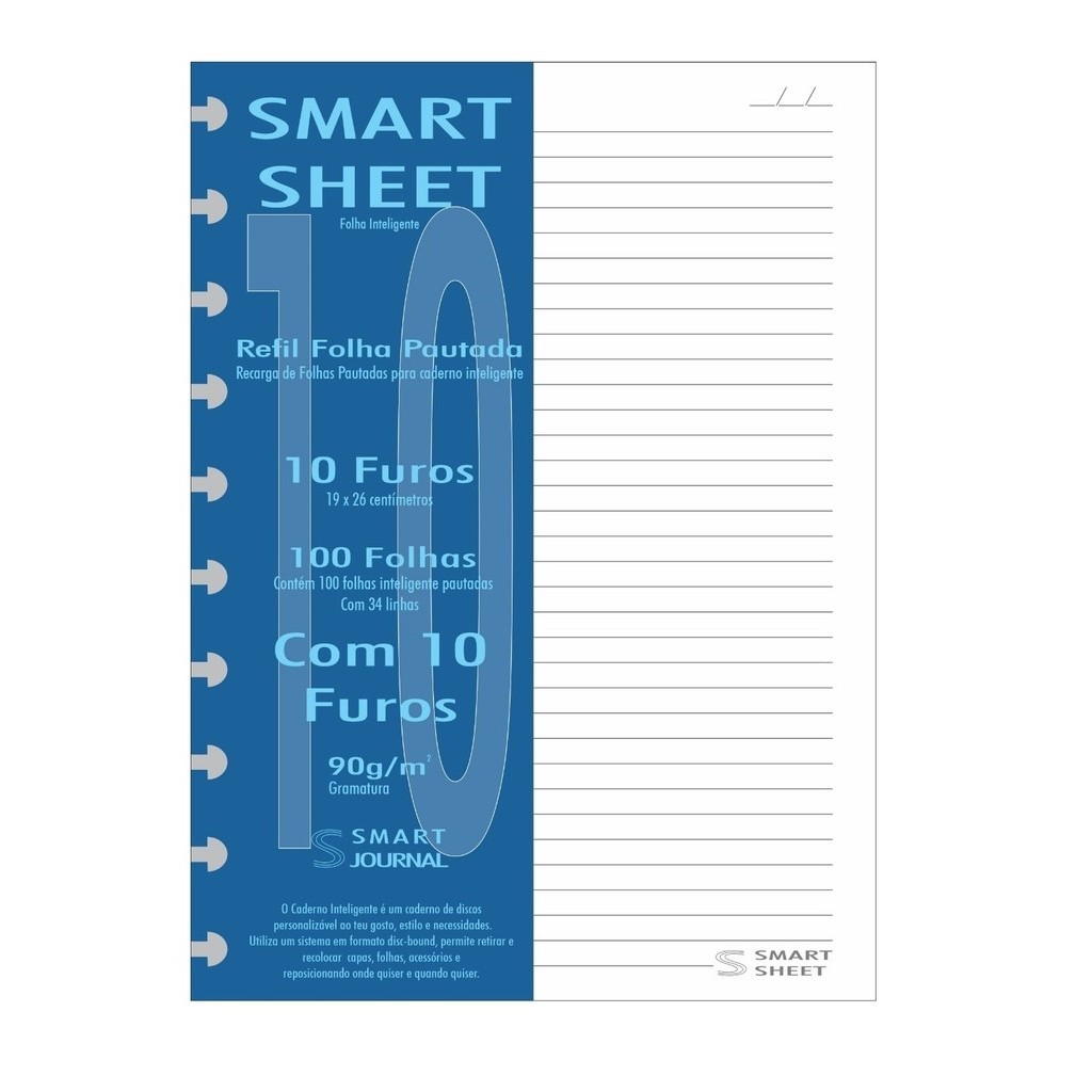 Refil Caderno de Disco 90g 300 Folhas Pautado 10 Furos B5 Smart Sheet