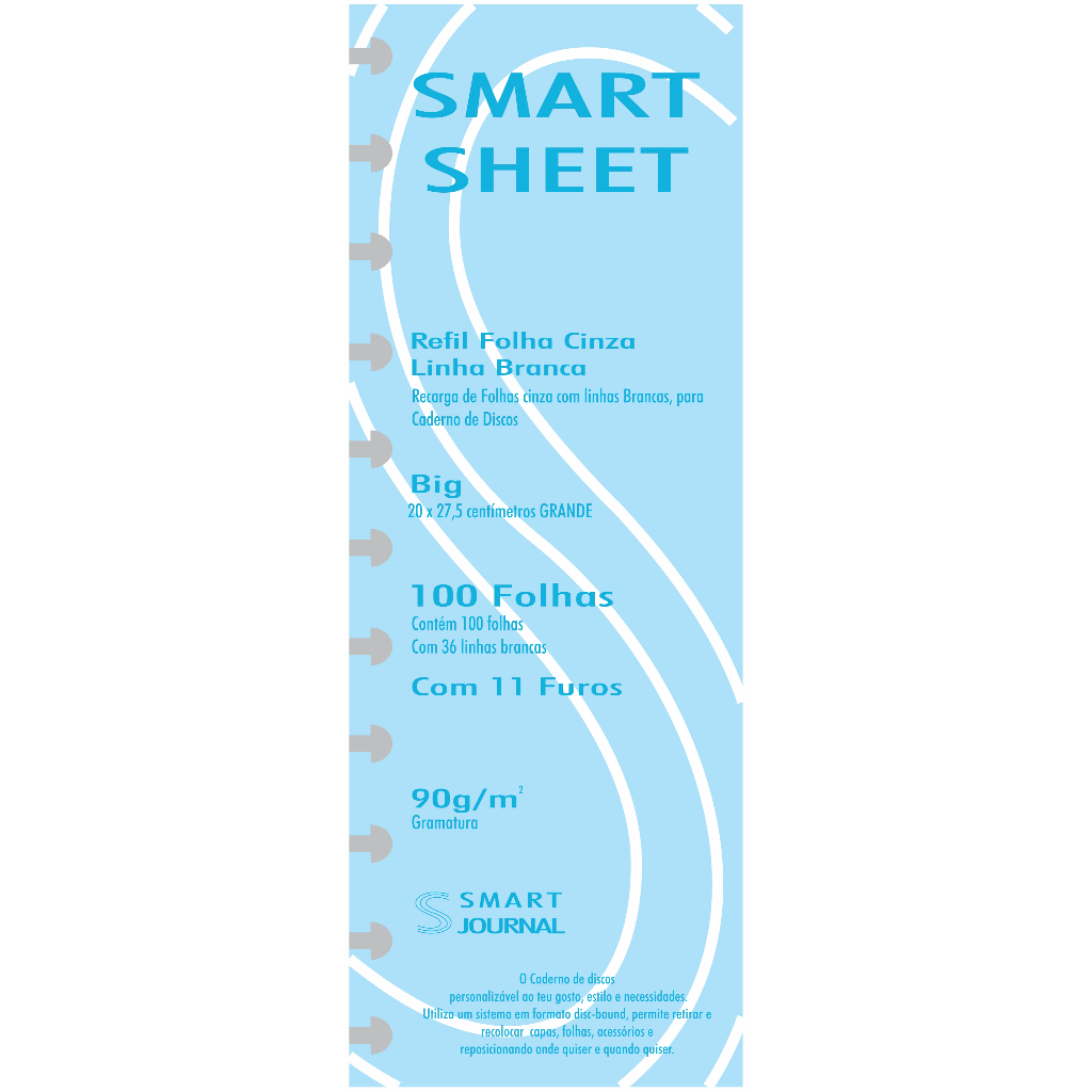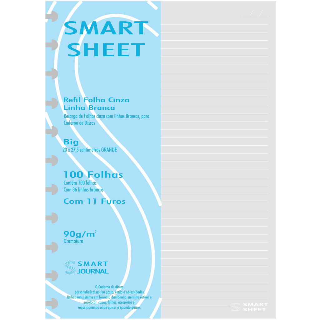 Refil Caderno de Discos 90g 100 Folhas Pauta Branca Grande 11 Furos Smart Sheet