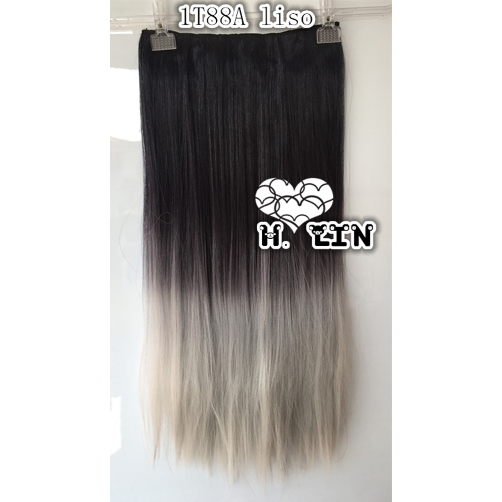 Aplique Mágico Cabelo fio Invisível Tiara cor 1t88a preto com ombre hair cinza californiana ondulado 60cm