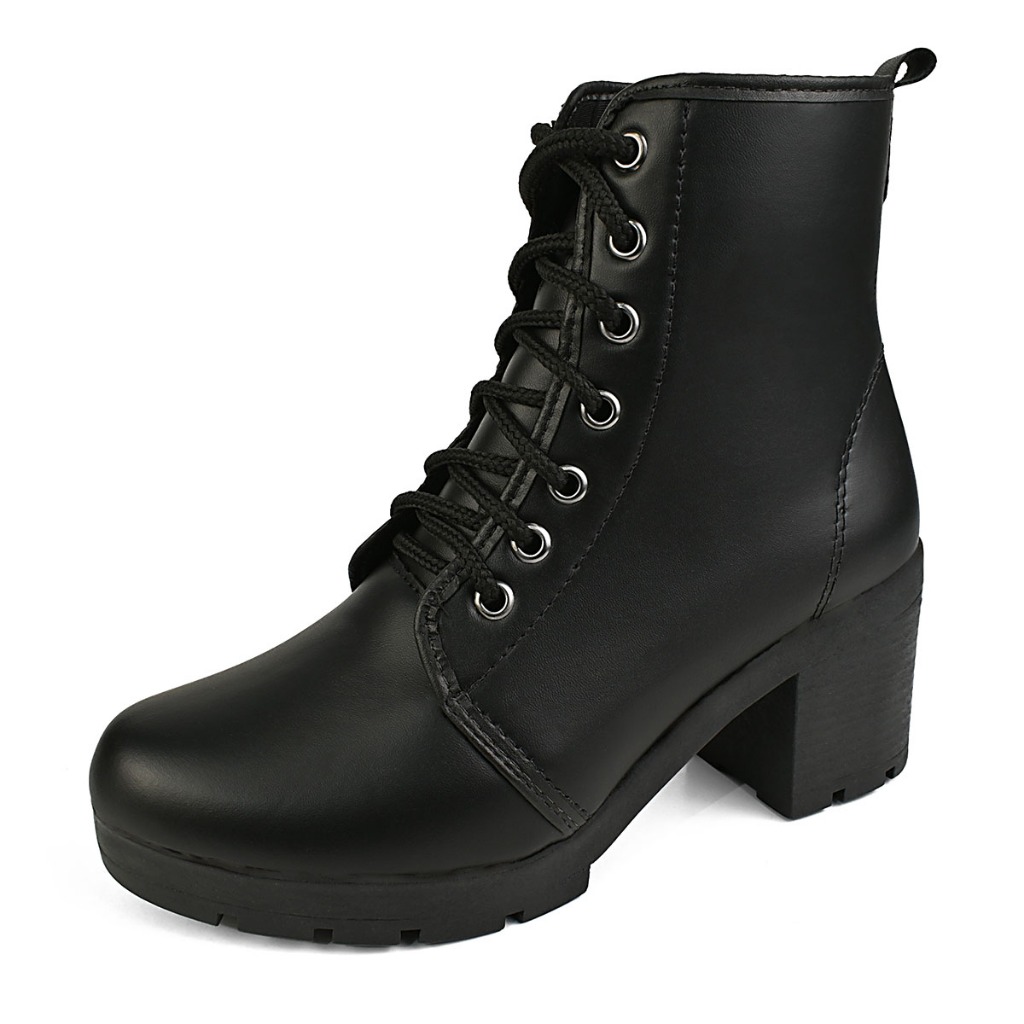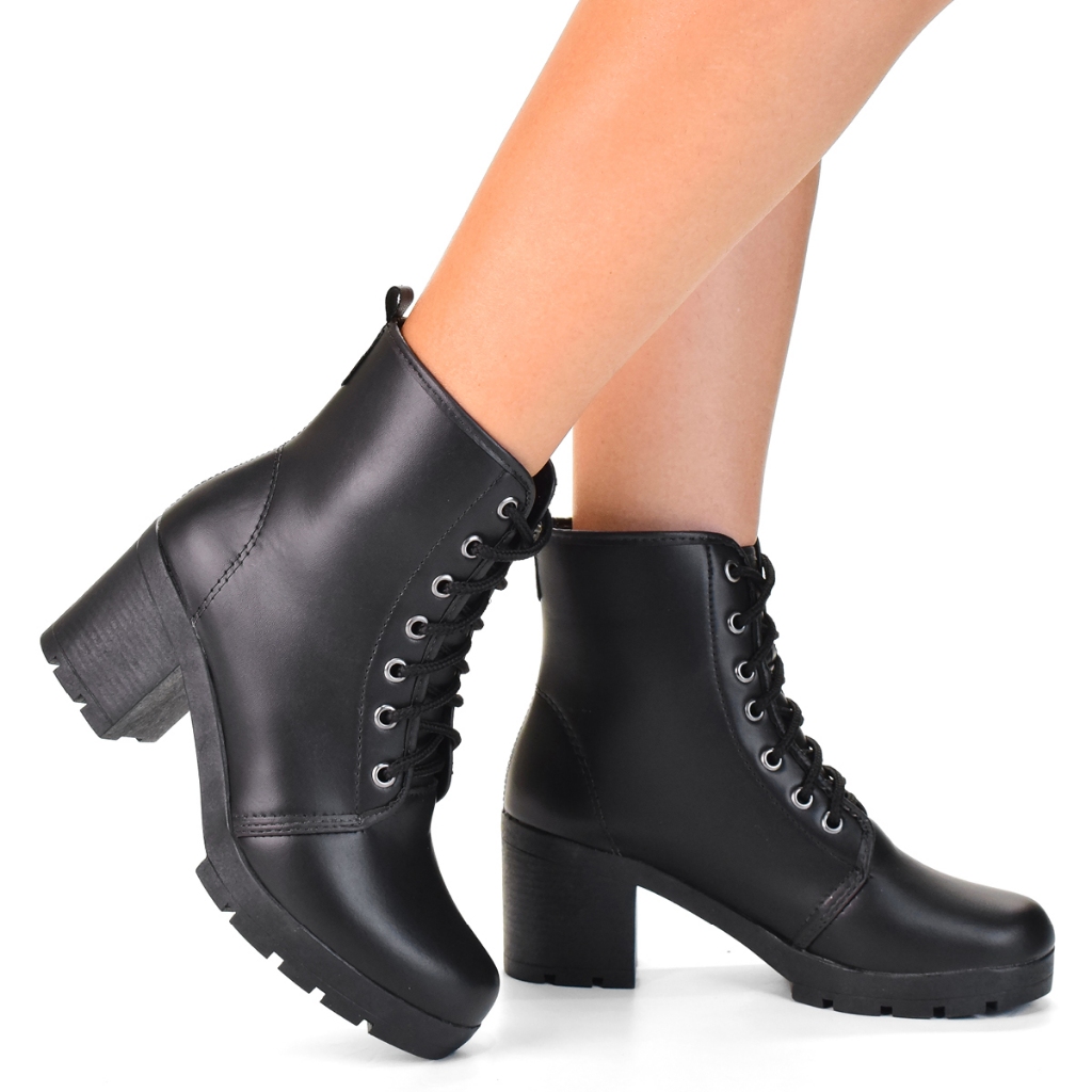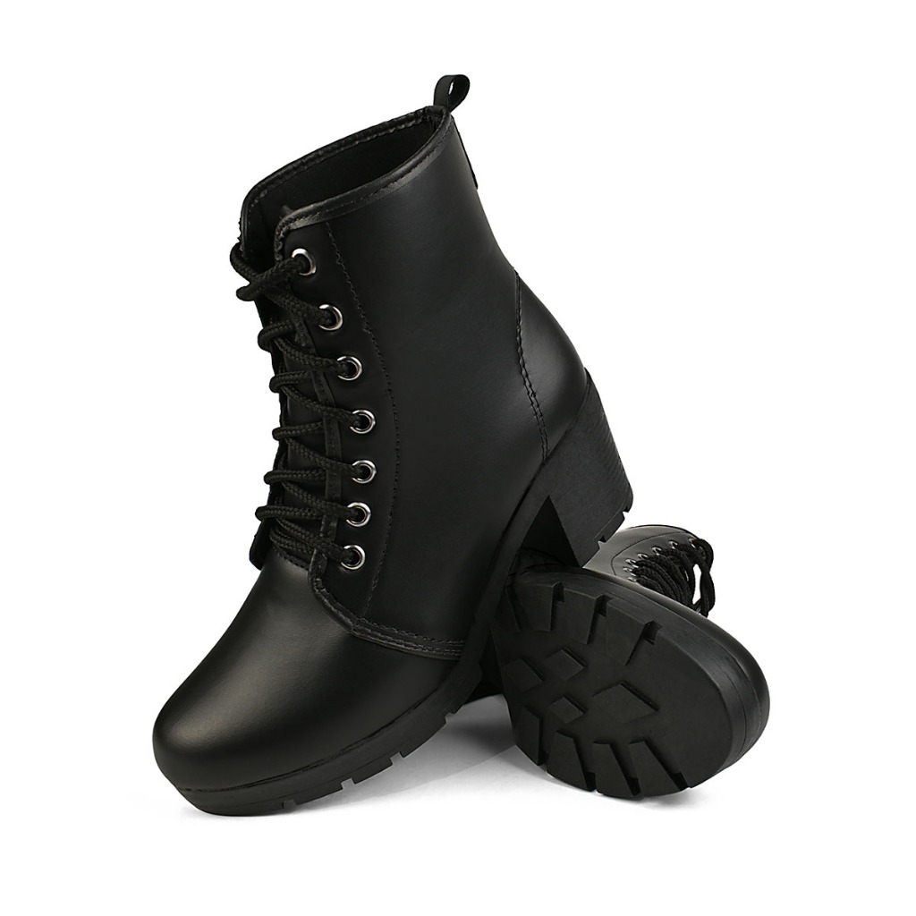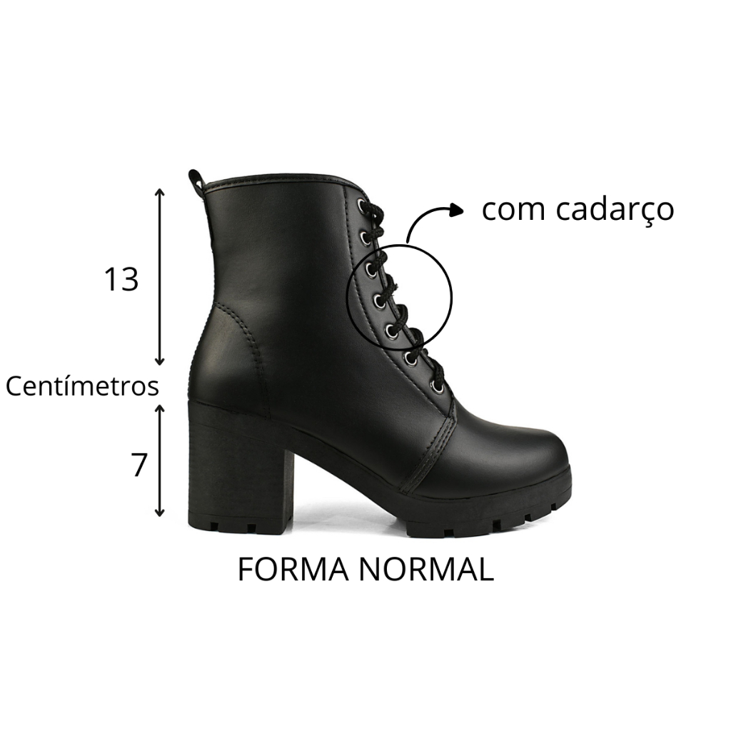 Coturno Feminino Com Salto Alto 0,07 Centímetros Tratorado Cano Curto Confortável Napa Preto