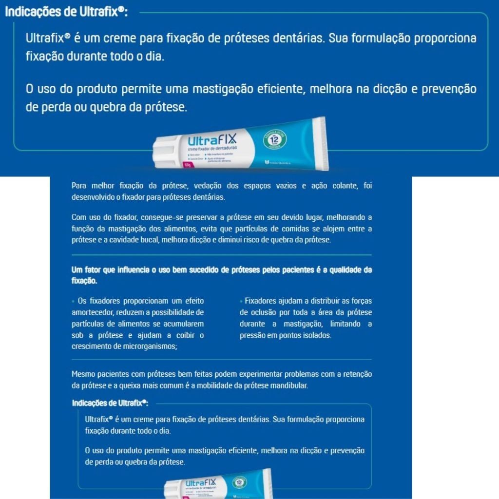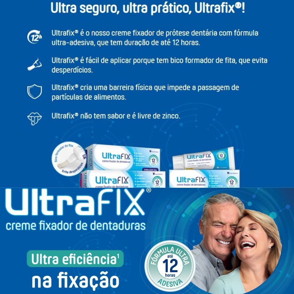 Ultrafix Fixador De Dentadura Proteção 12 Horas Sem Sabor Creme 40 Gramas (Livre de Zinco)