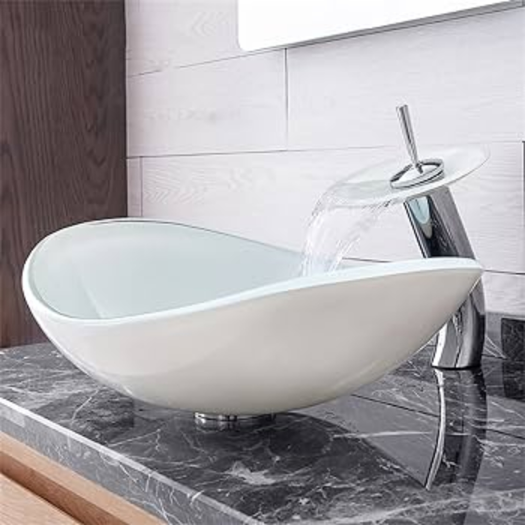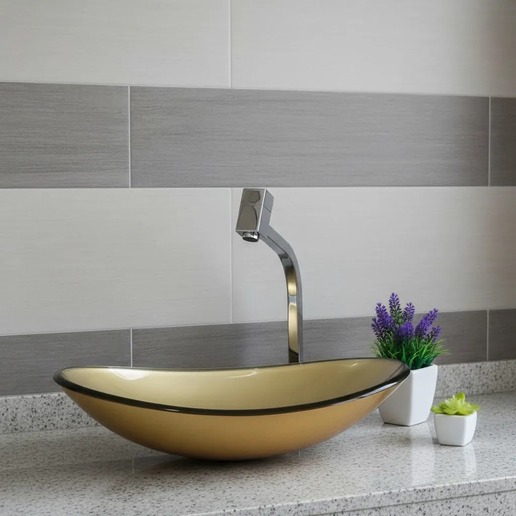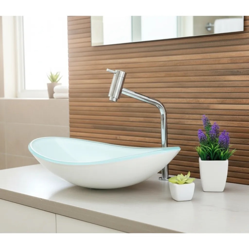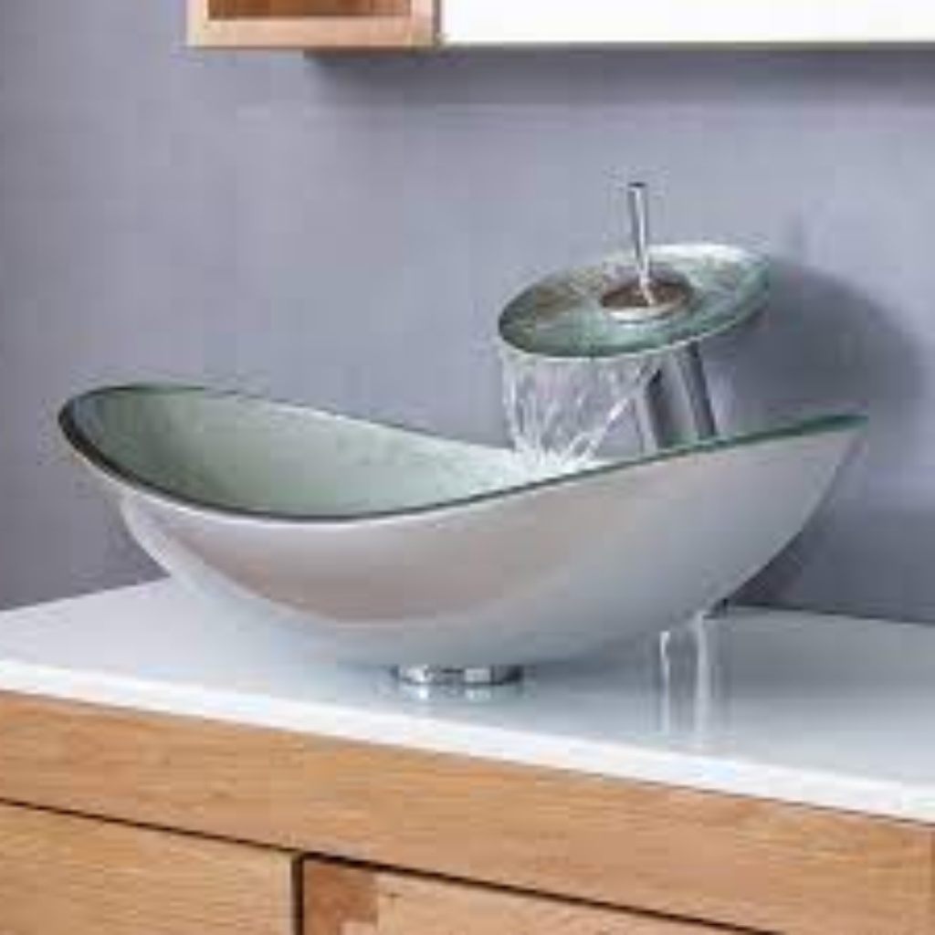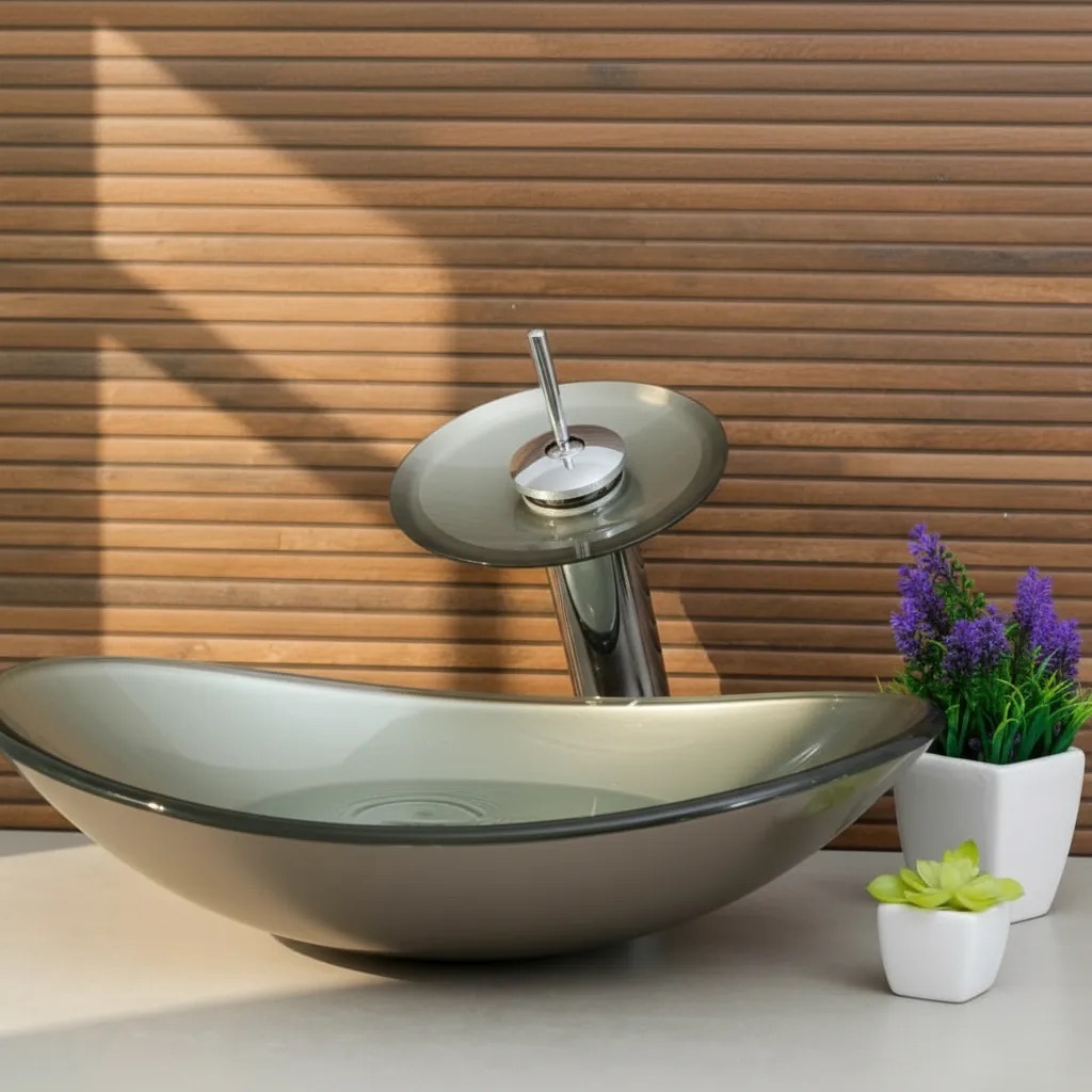 Cuba Pia Oval de Vidro para Banheiros e Lavabos + Válvula Ralo Click