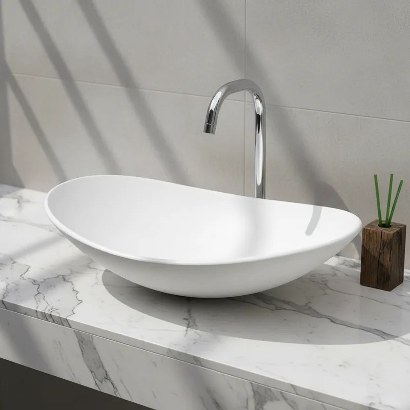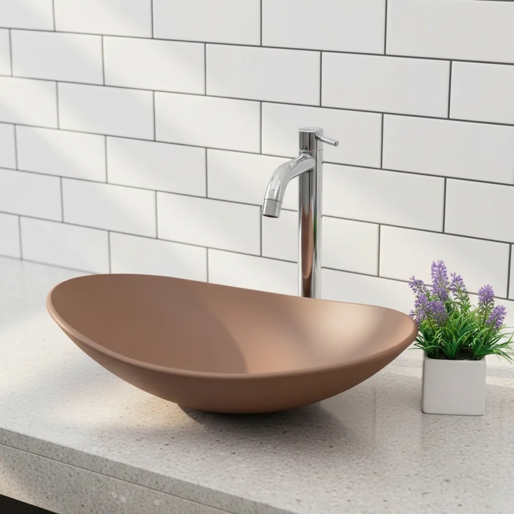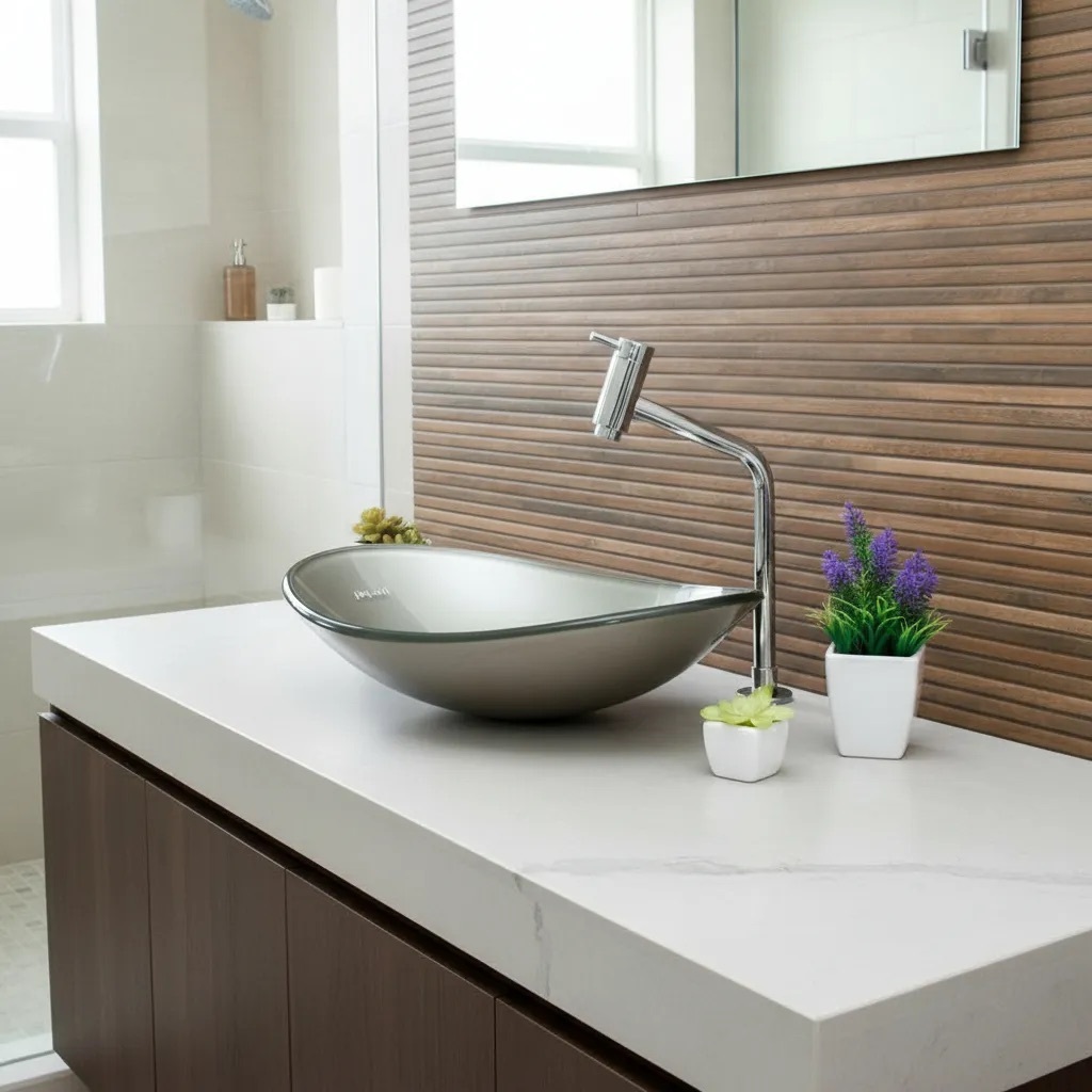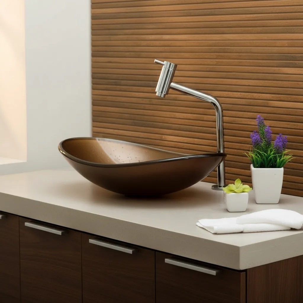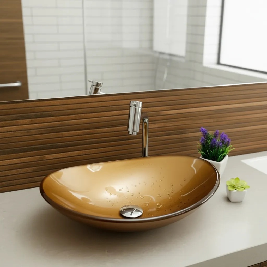 Cuba Pia Oval de Vidro para Banheiros e Lavabos + Válvula Ralo Click