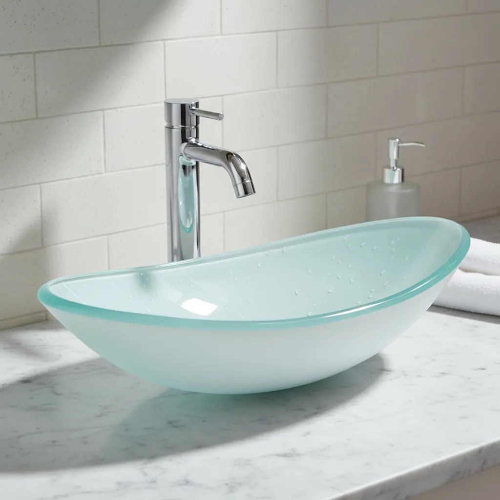 Cuba de Vidro 8 mm para Banheiros e Lavabos De Apoio - Oval