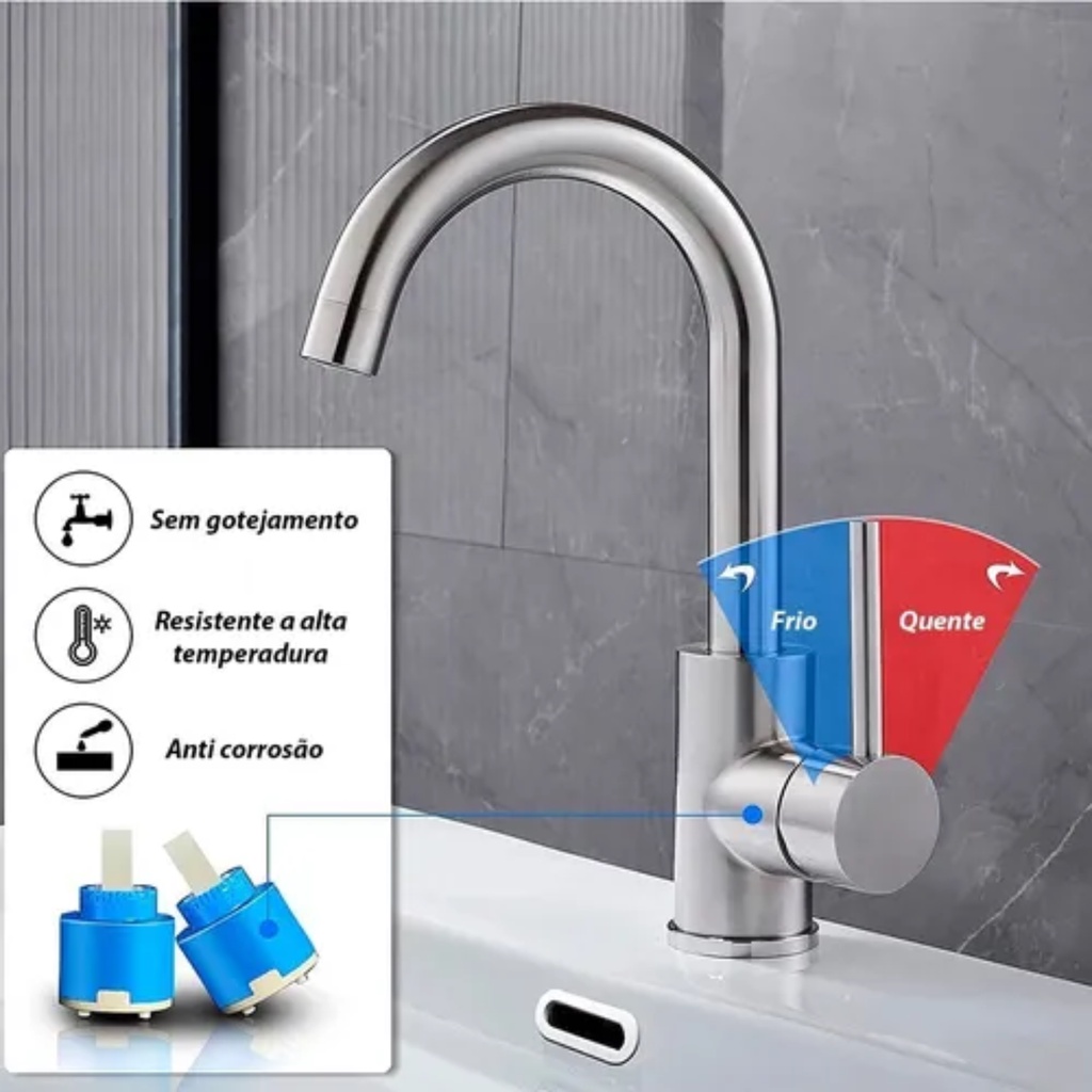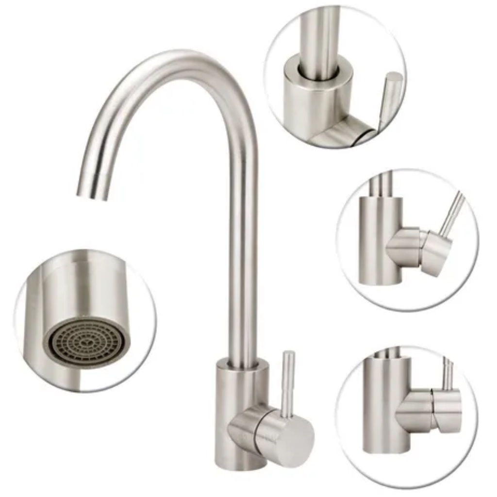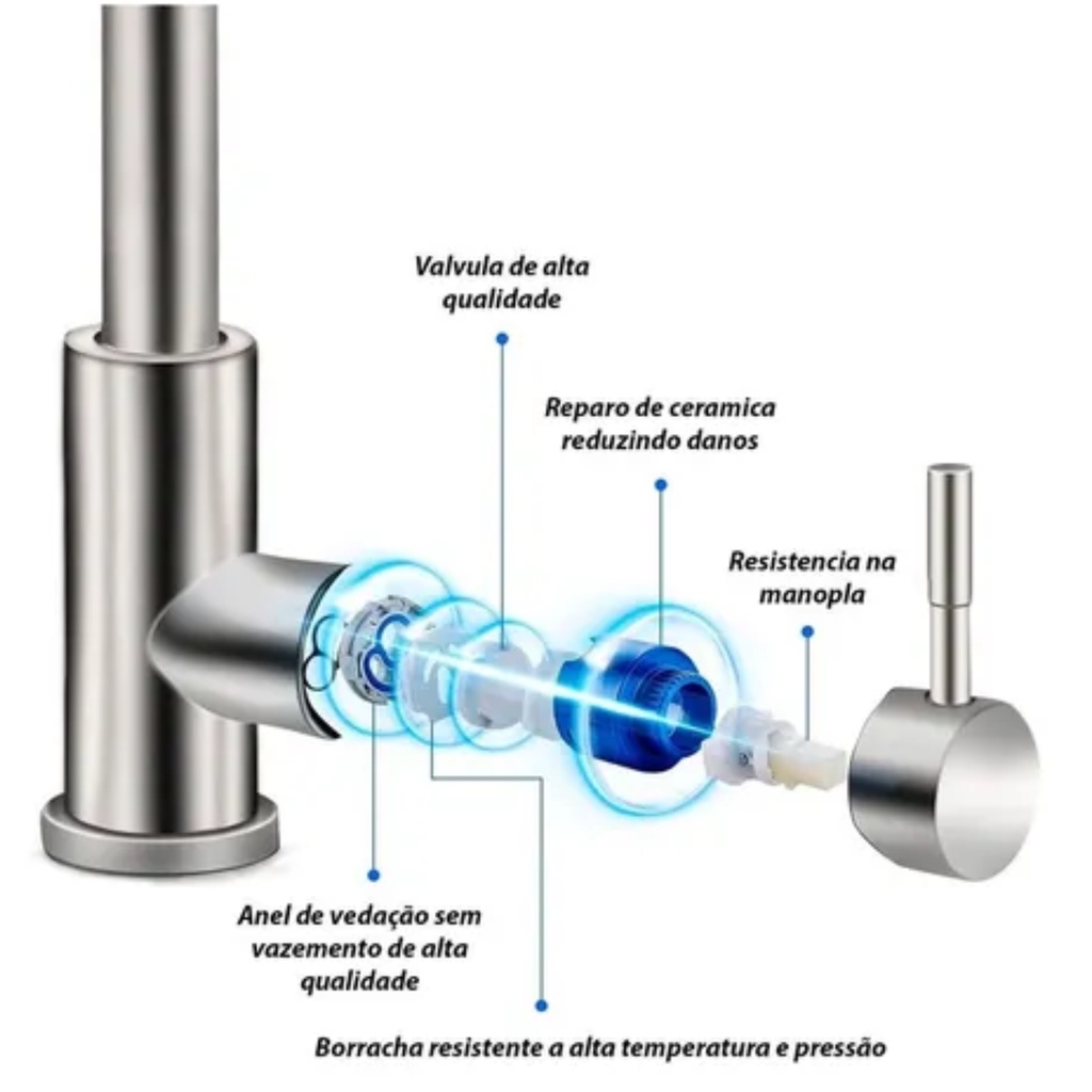 Torneira Misturador Monocomando Cozinha Bica Móvel Alta Inox
