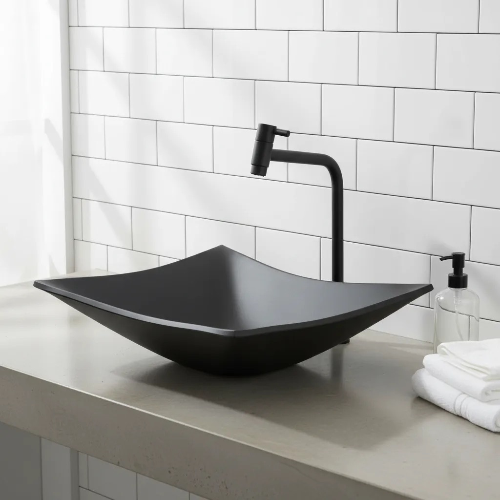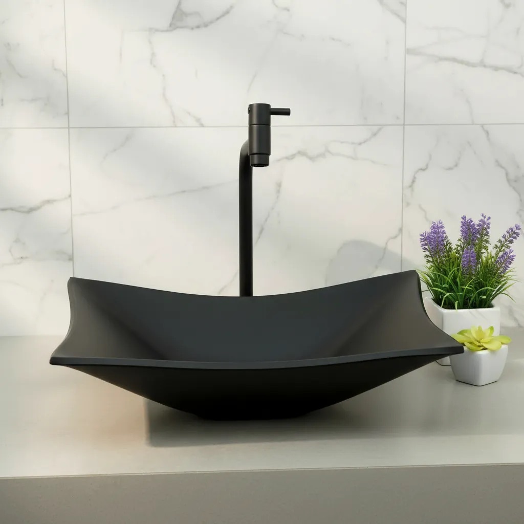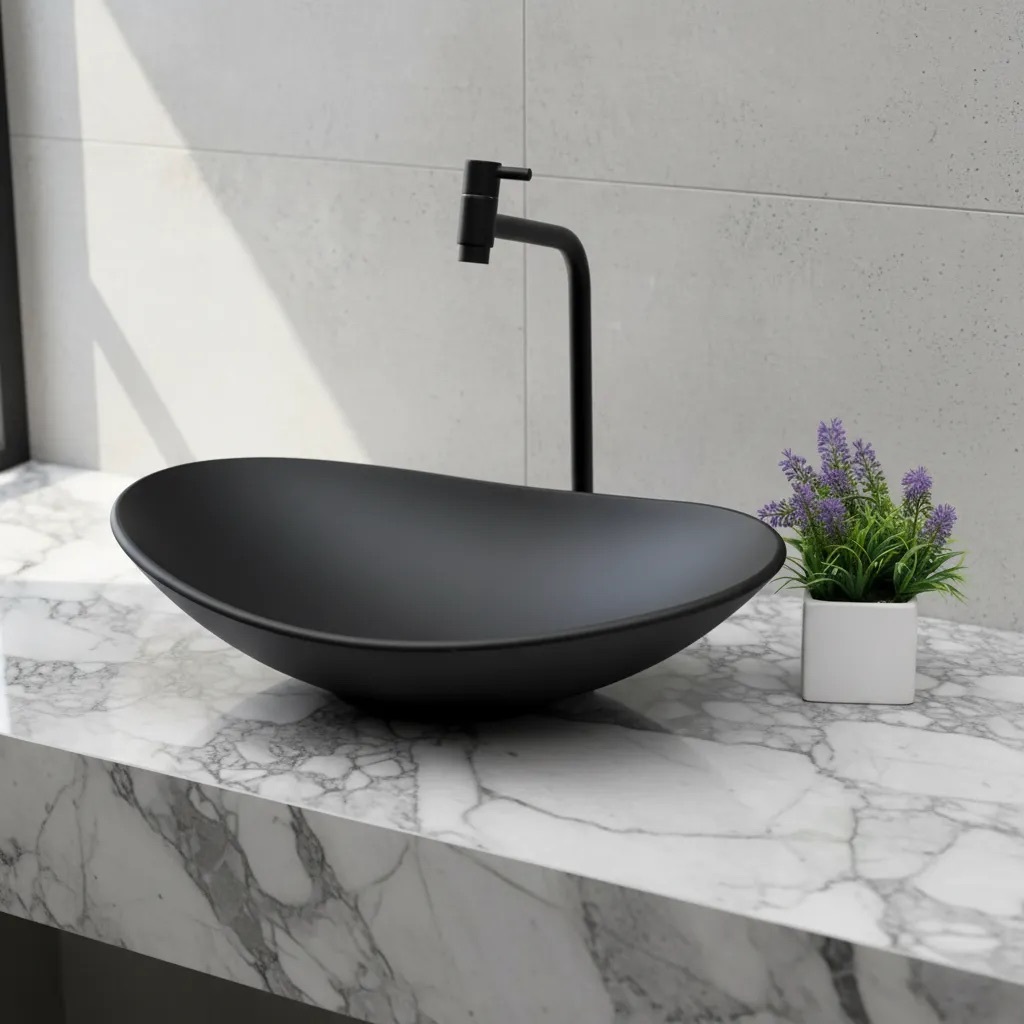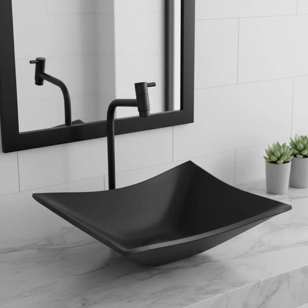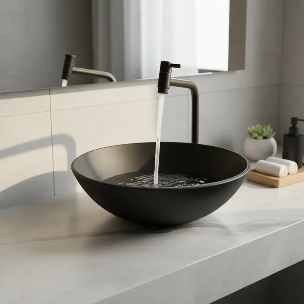 Conjunto Banheiro Cuba Pia com Torneira Link e Válvula Ralo Click Up - Preto Fosco