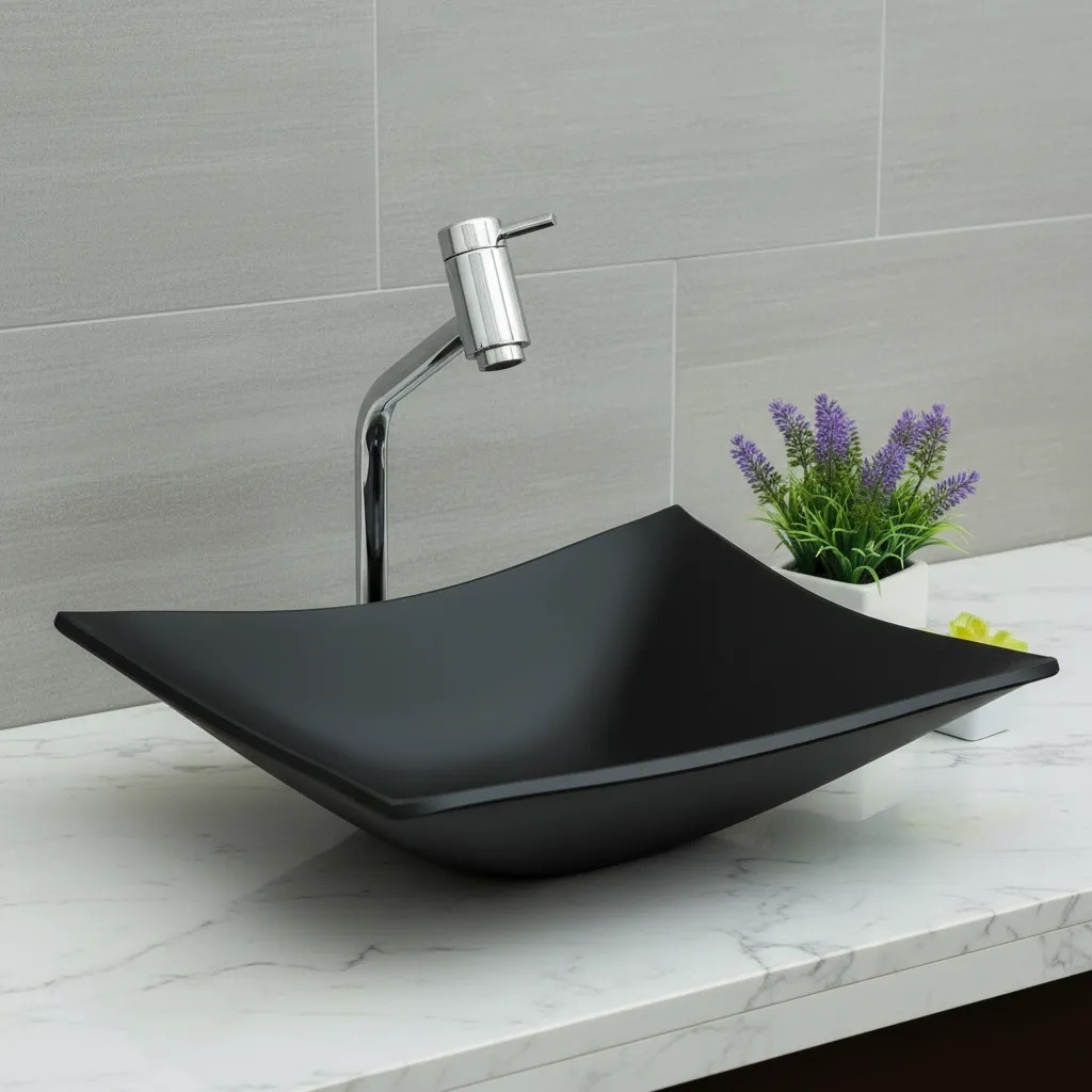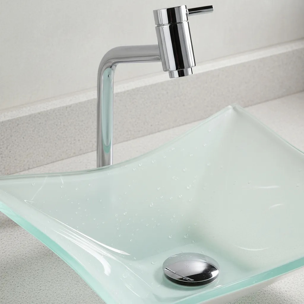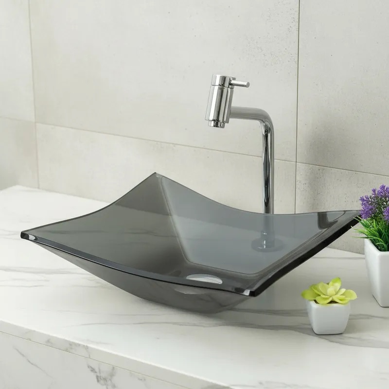 Cuba De Vidro P/ Banheiro Lavabo Retangular + Válvula Click