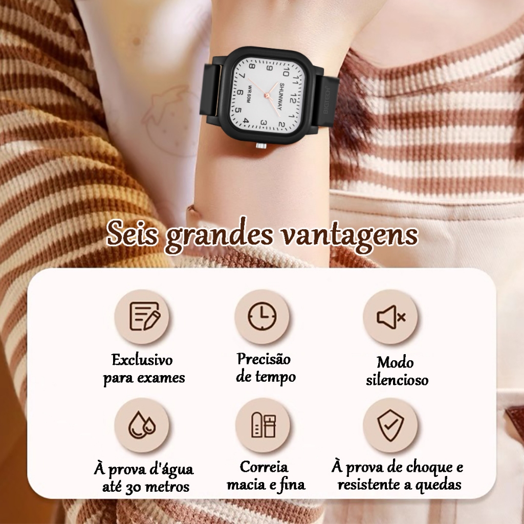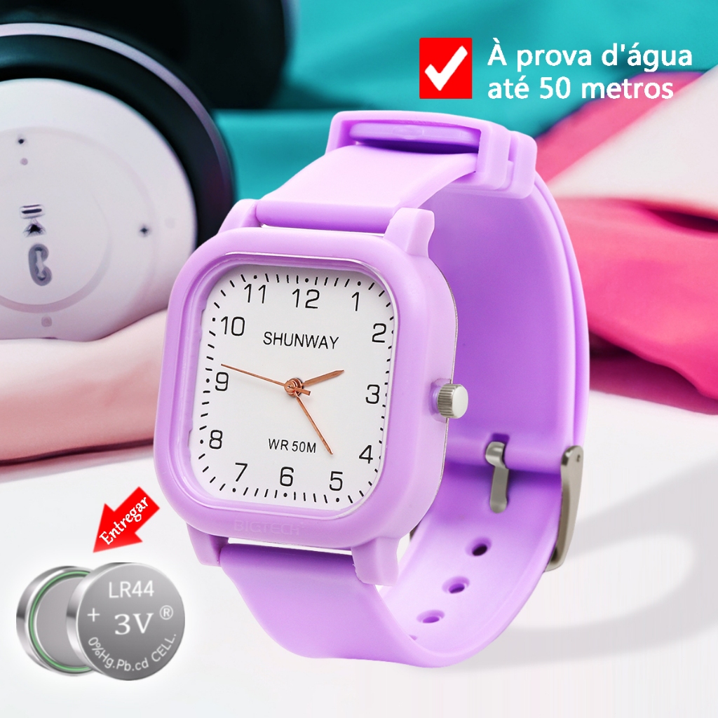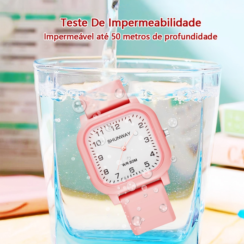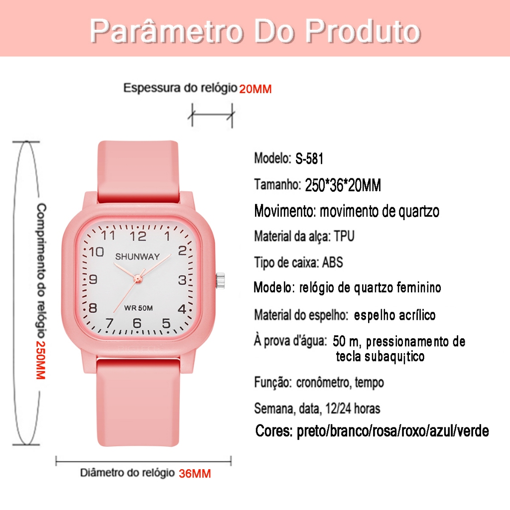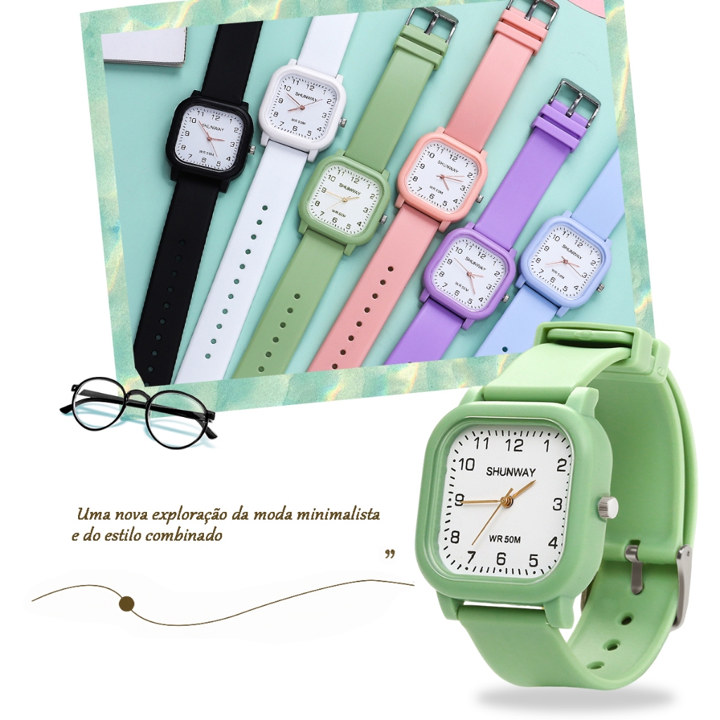 Relógio Quadrado Elegante Feminino Mostrador Esportivo Com Números Árabes Pulseira De Silicone