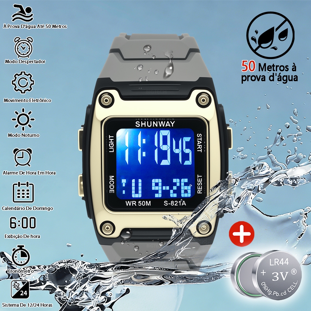 Relógio Esportivo Masculino À Prova D'água Com Luz Noturna LED Para Atividades Ao Ar Livre Universal