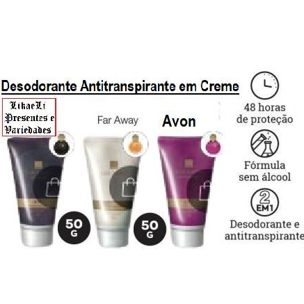 3 Uns. Desodorante Bisnaga Antitranspirante em Creme Avon 50 g com aplicador = Todos as Fragrancias = Variações