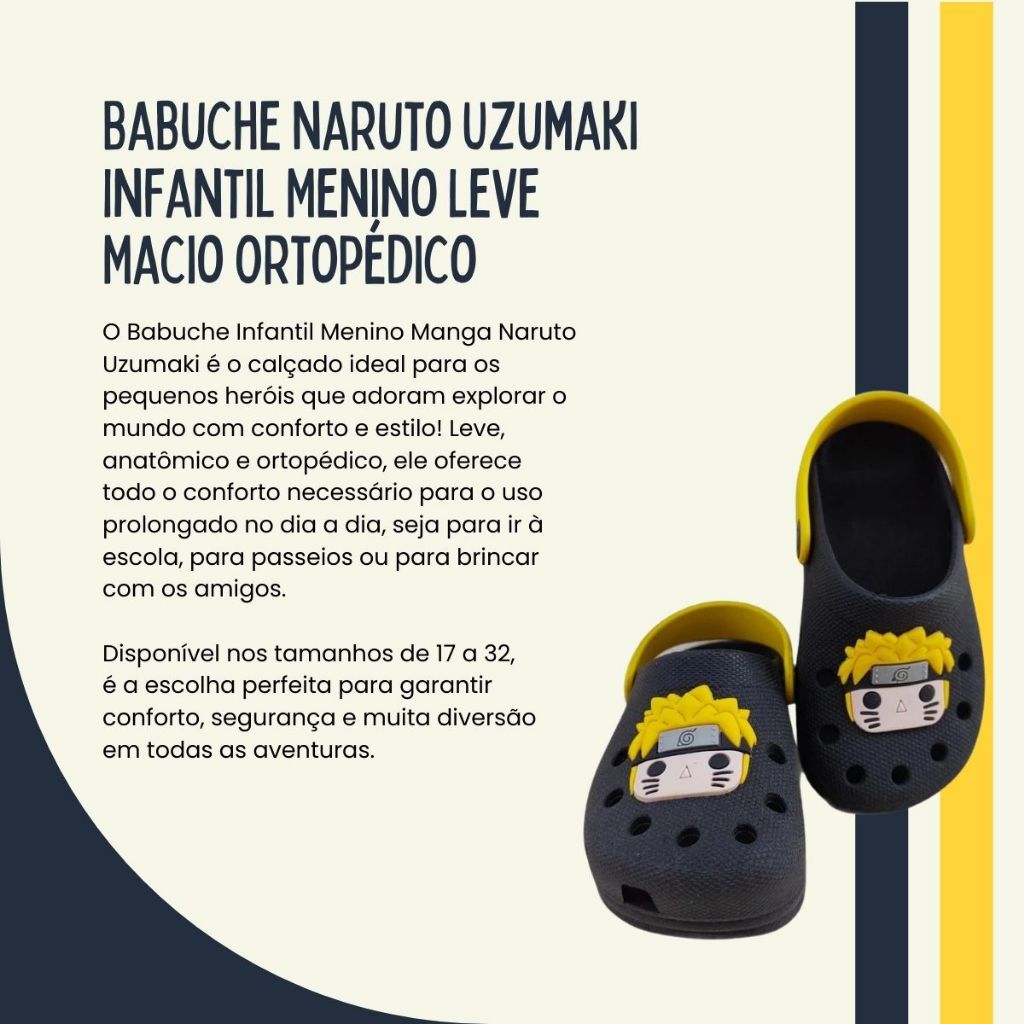 Babuche Sandalia Infantil Menino Manga Naruto Uzumaki Leve E Macio Dia A Dia Ortopedico Anatomico