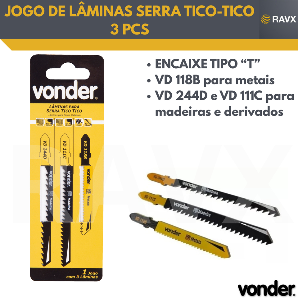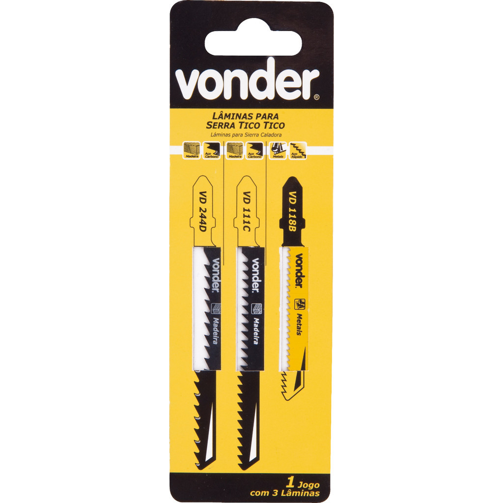 Jogo de lâminas de serra tico-tico, madeira, metal, VONDER