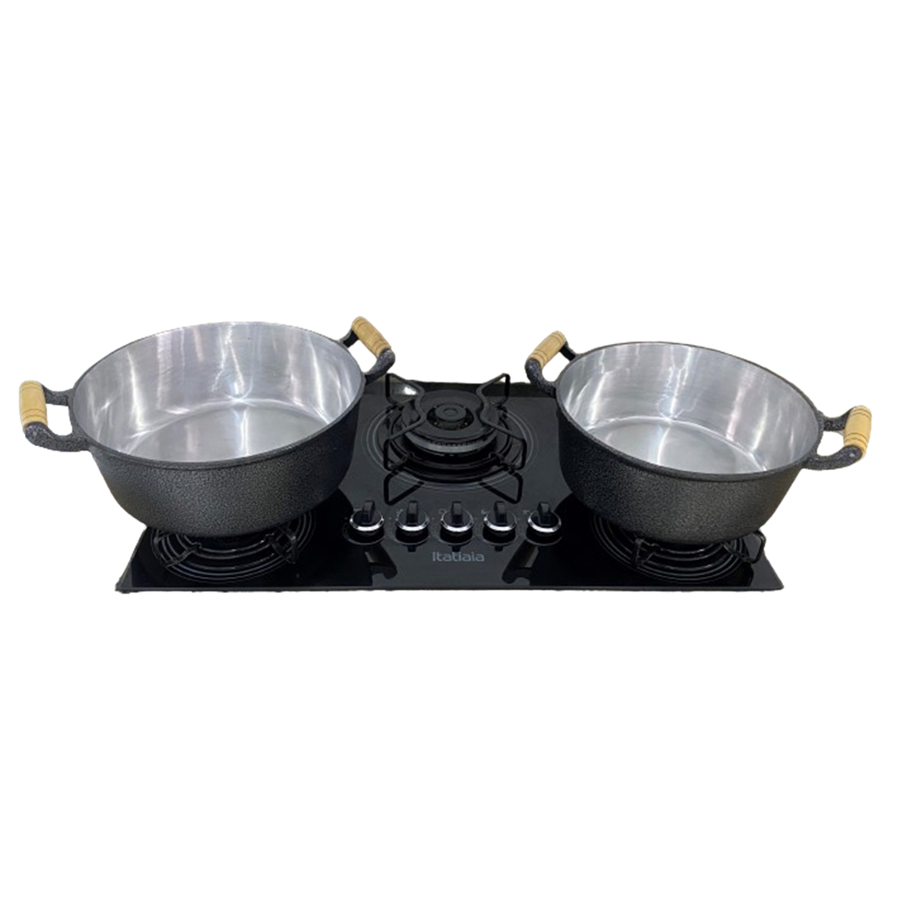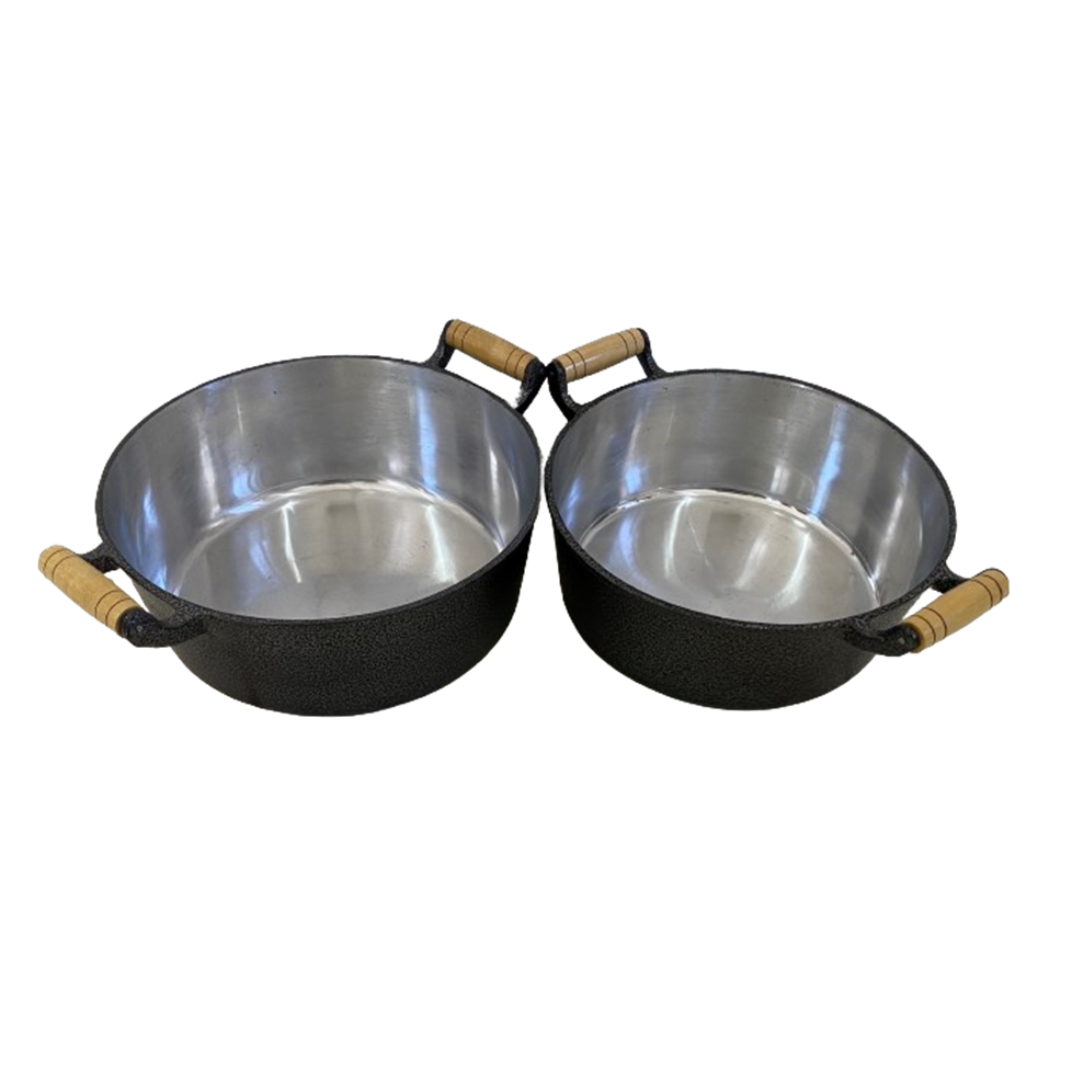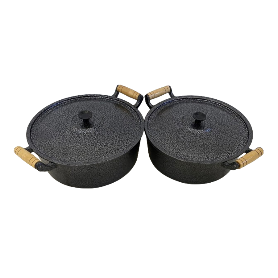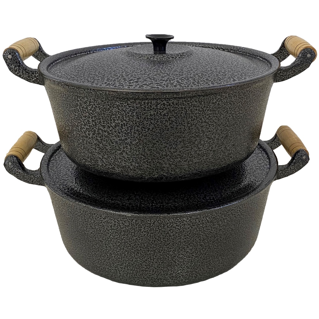 Jogo com 2 Panelas Pretas Grandes de Alumínio Batido Fundido Grosso Craqueado Caçarolas 5L/6L nº 26 e 28