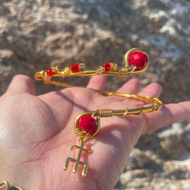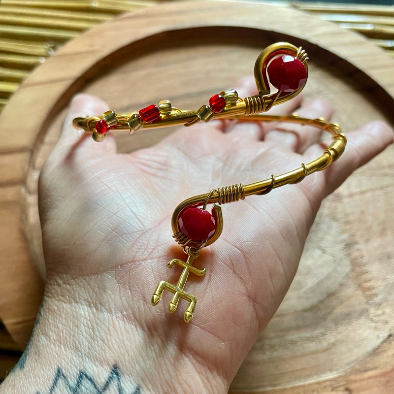 🔱Exclusivo Bracelete Sedução Pomba Gira Dourado com Cristais e a tridente🔱