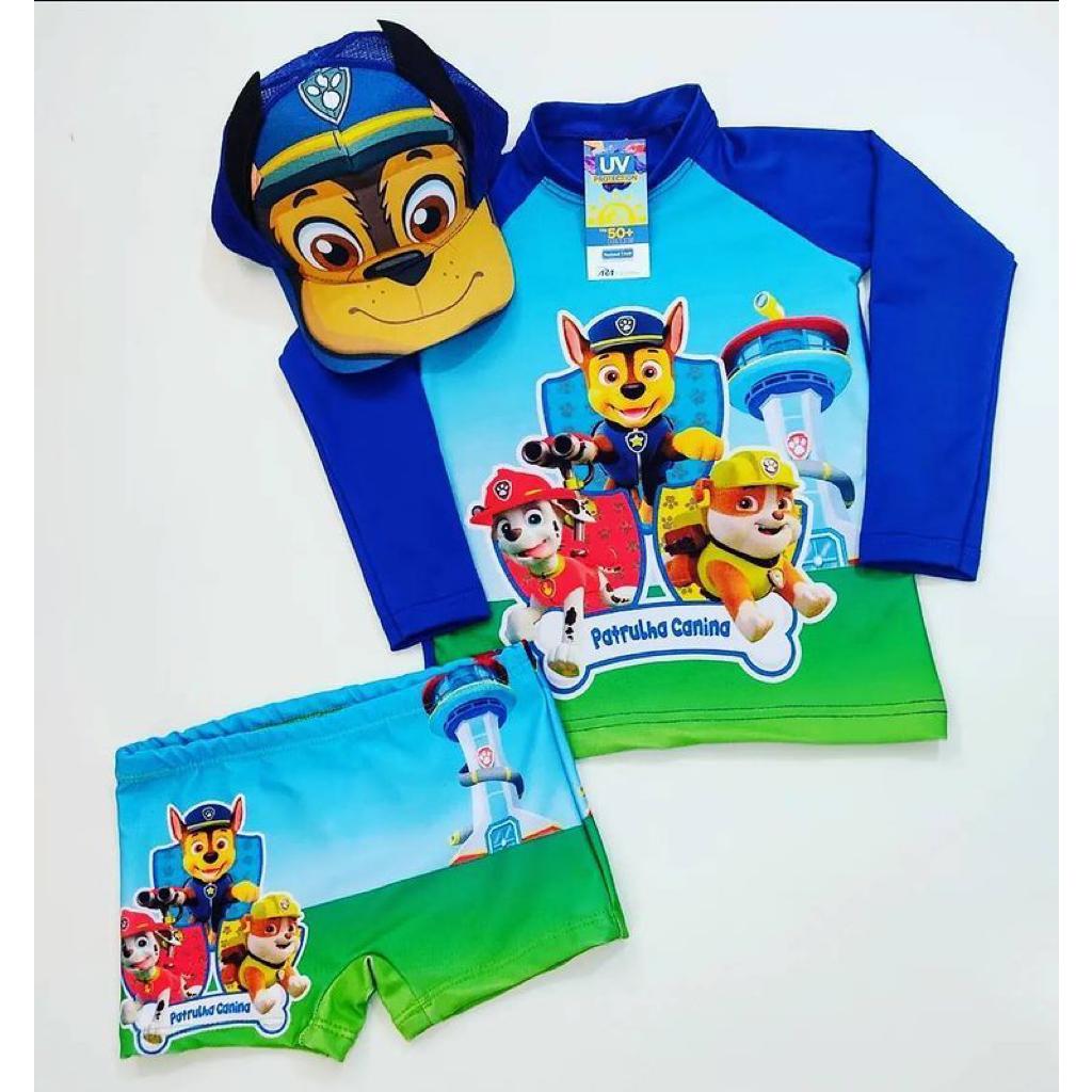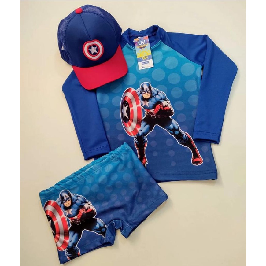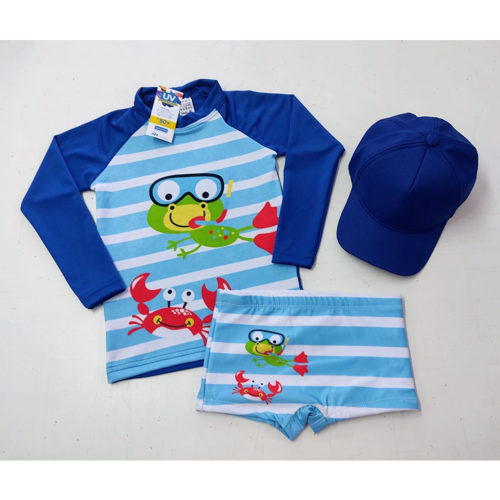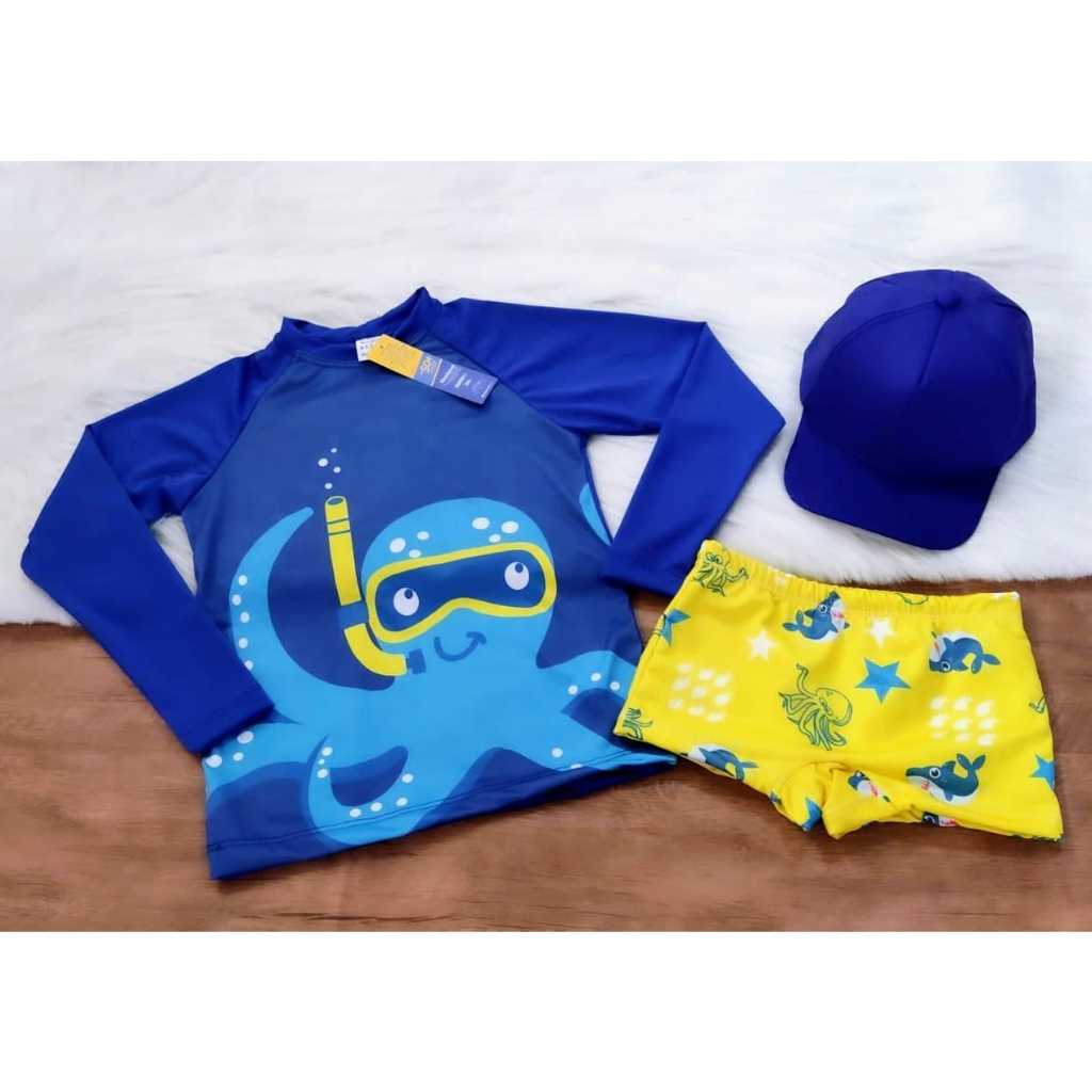 Sunga Infantil + Blusa de Proteção Solar Infantil UV50 Blusa Manga Longa para Praia e Piscina + Boné