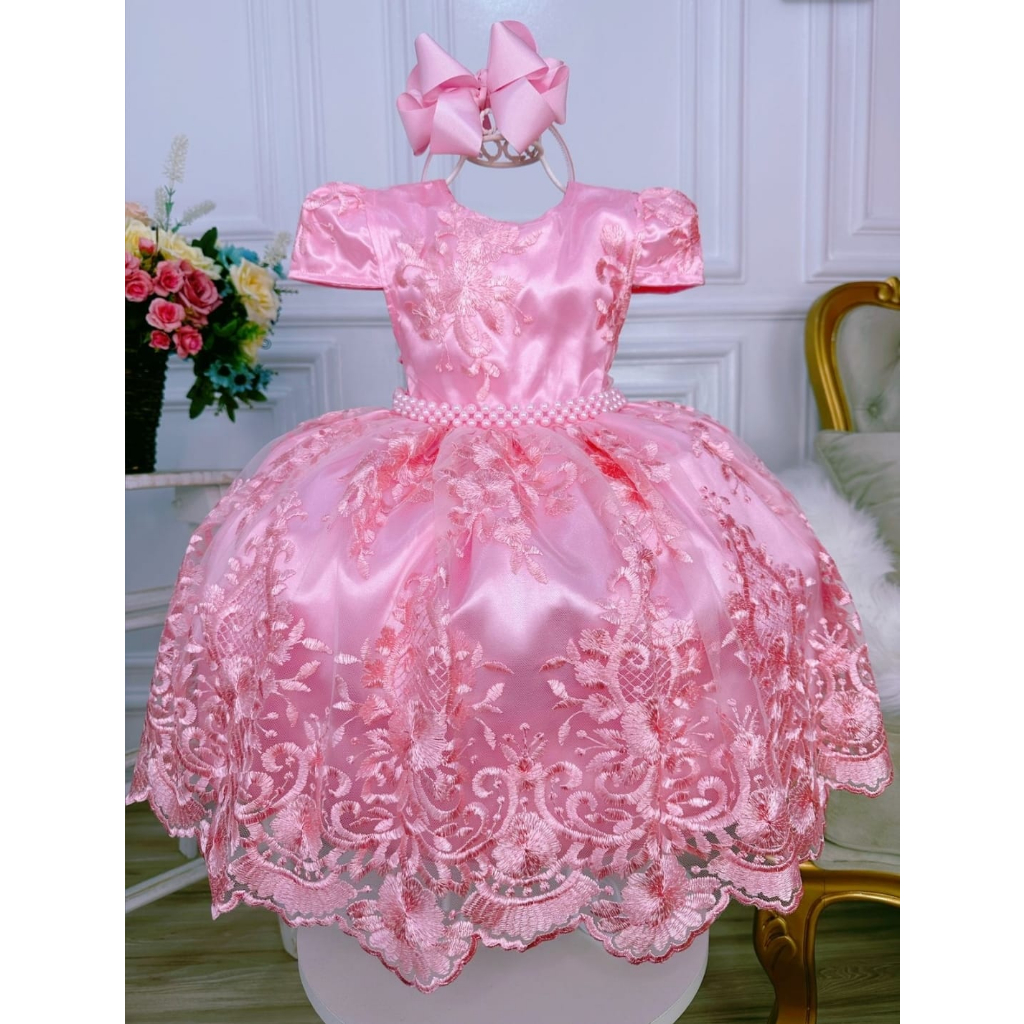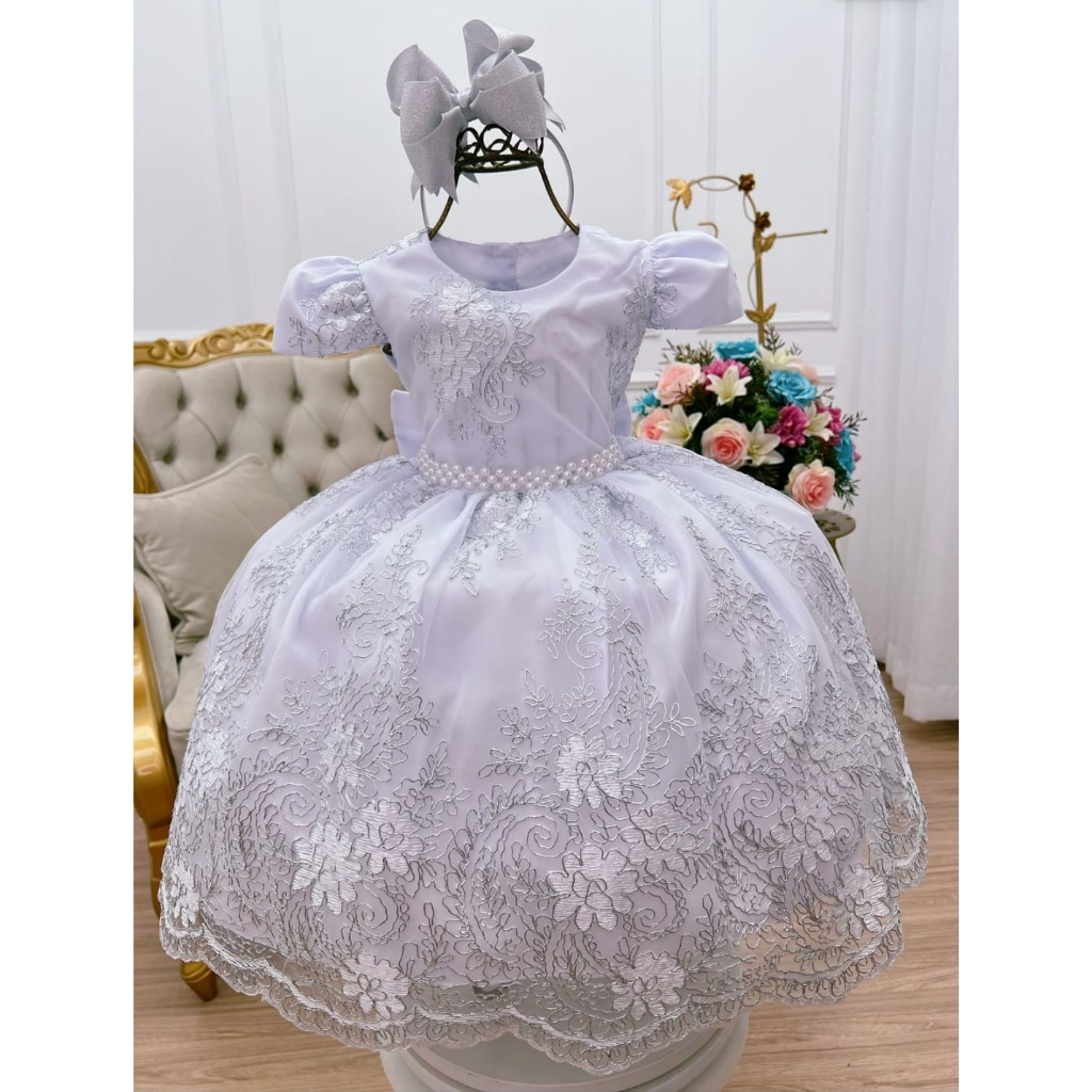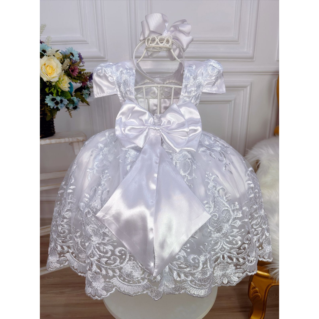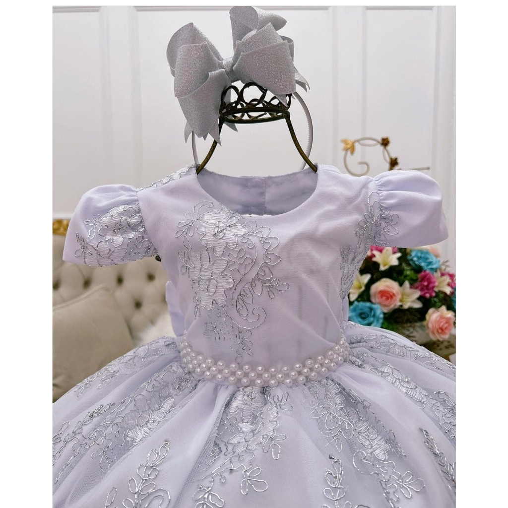 Vestido Bebê e Infantil Branco para Batizado Daminha Festas Luxo Vestido de Festa Infantil para Princesas Realeza