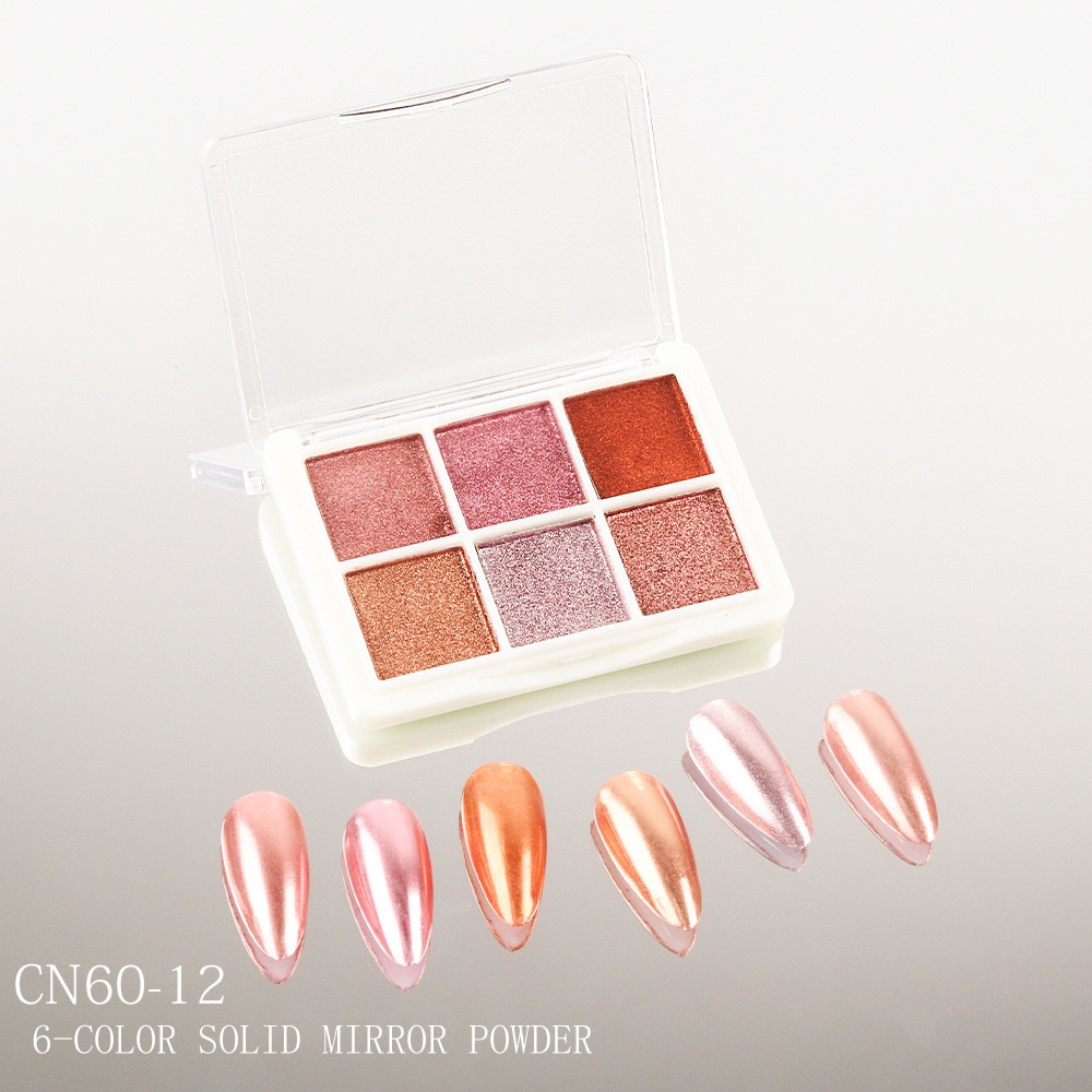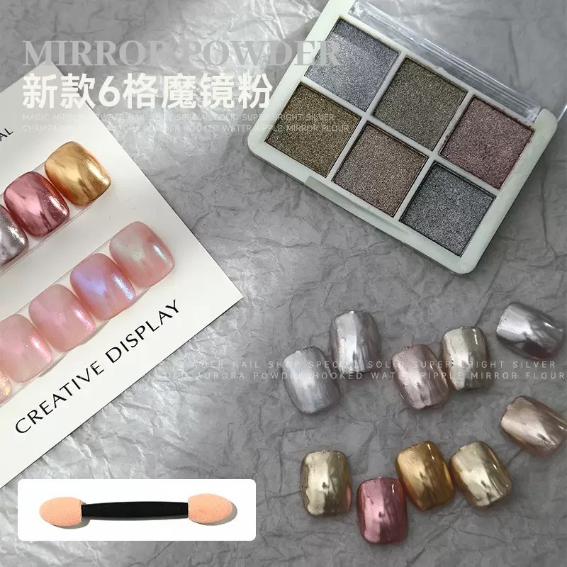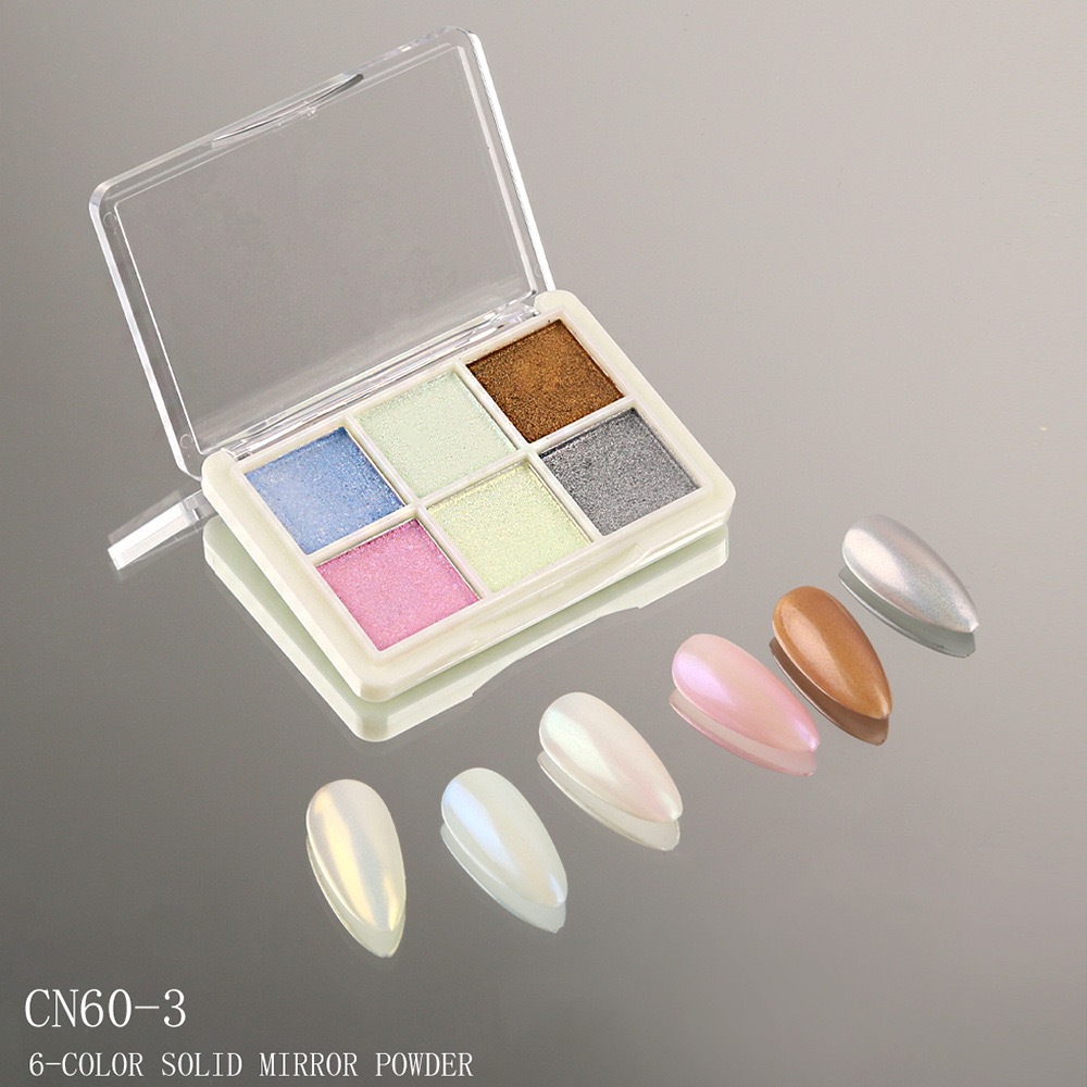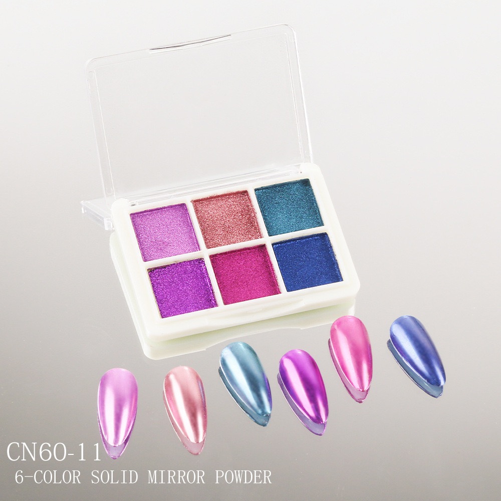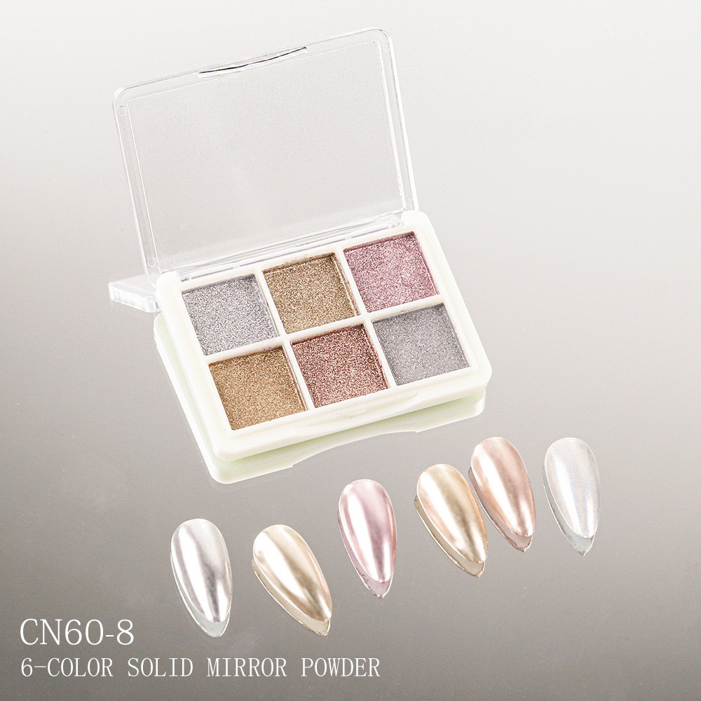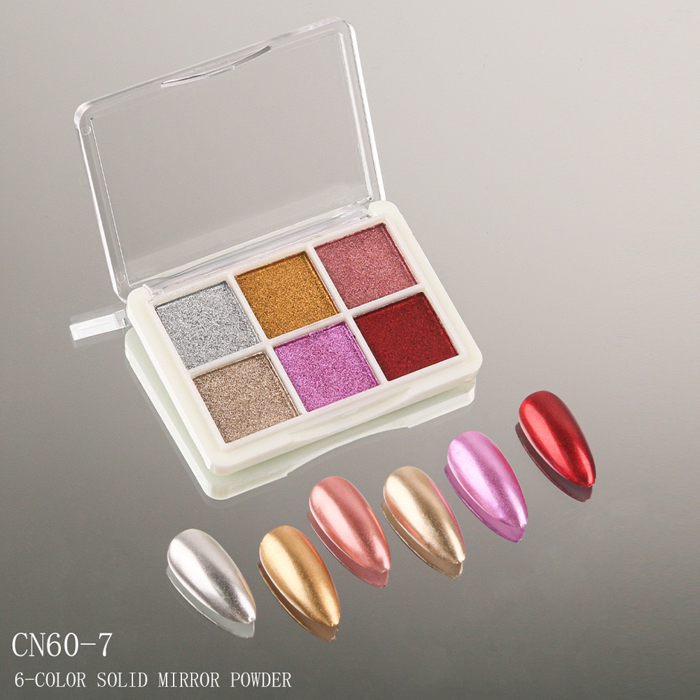 KIT 6 Cores Aurora Solid Mirror Unhas Pó Glitter Dust Metal Effect Unhas UV Gel