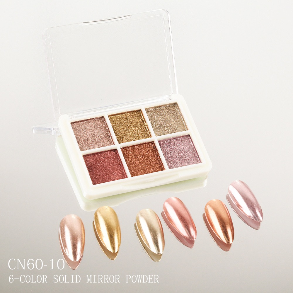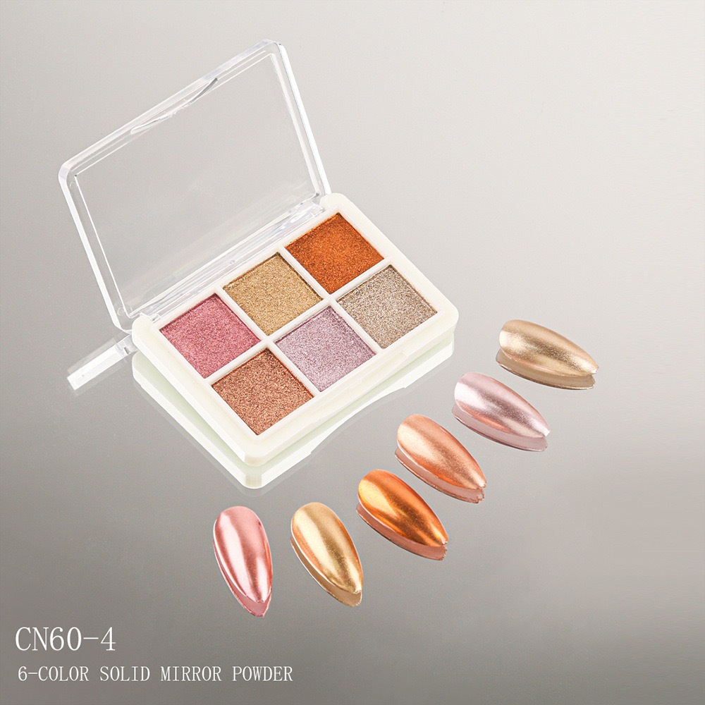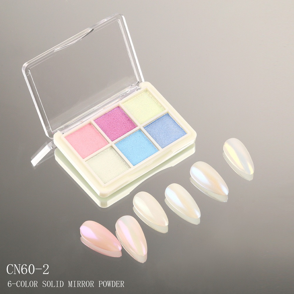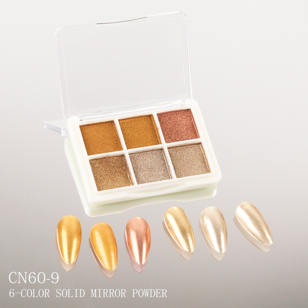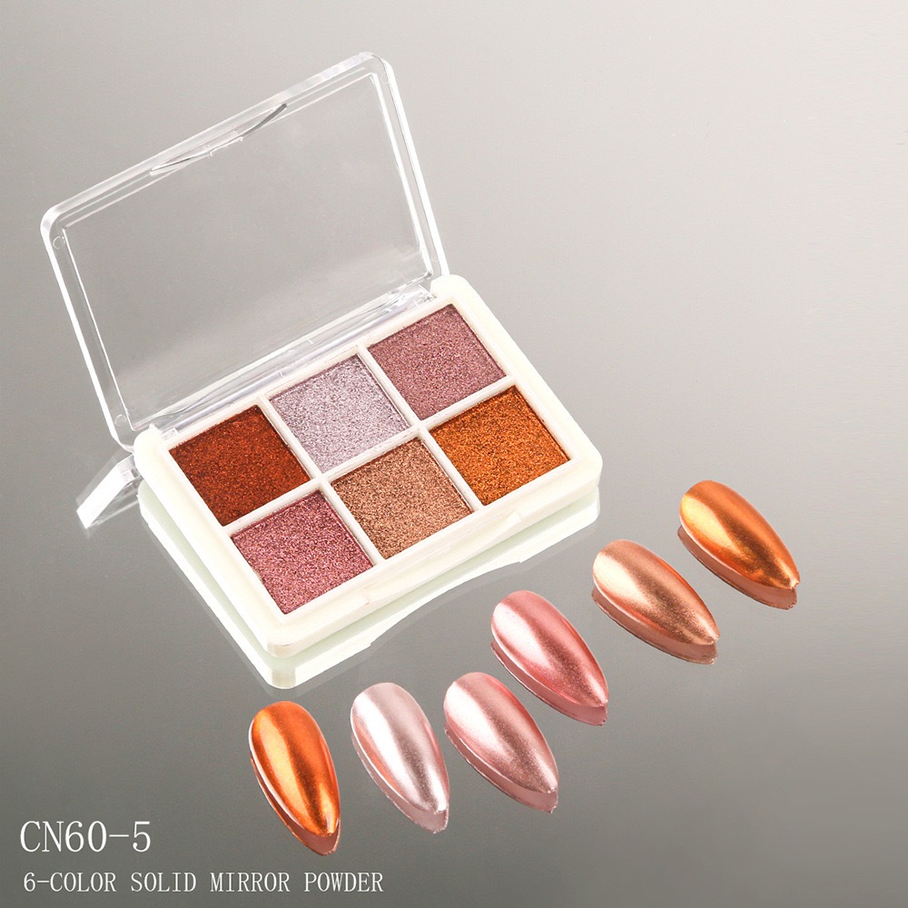 KIT 6 Cores Aurora Solid Mirror Unhas Pó Glitter Dust Metal Effect Unhas UV Gel