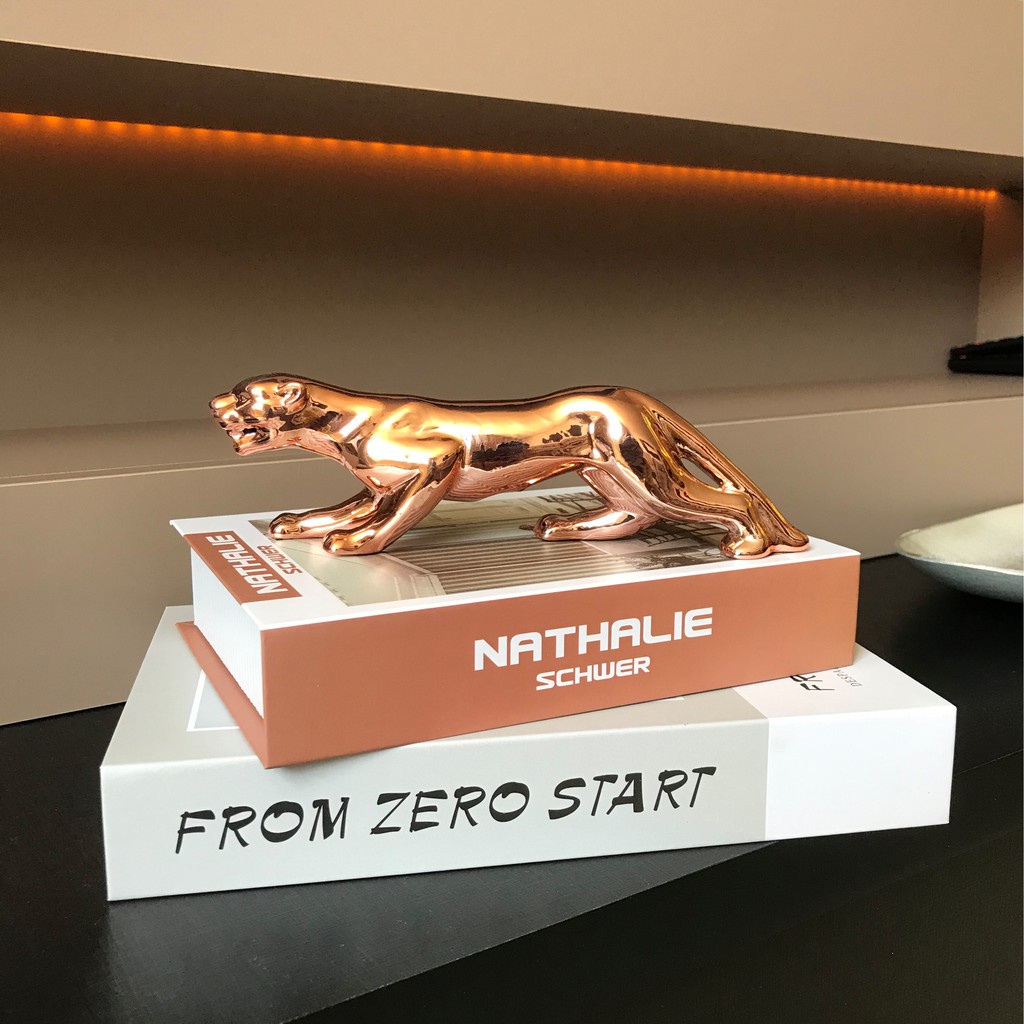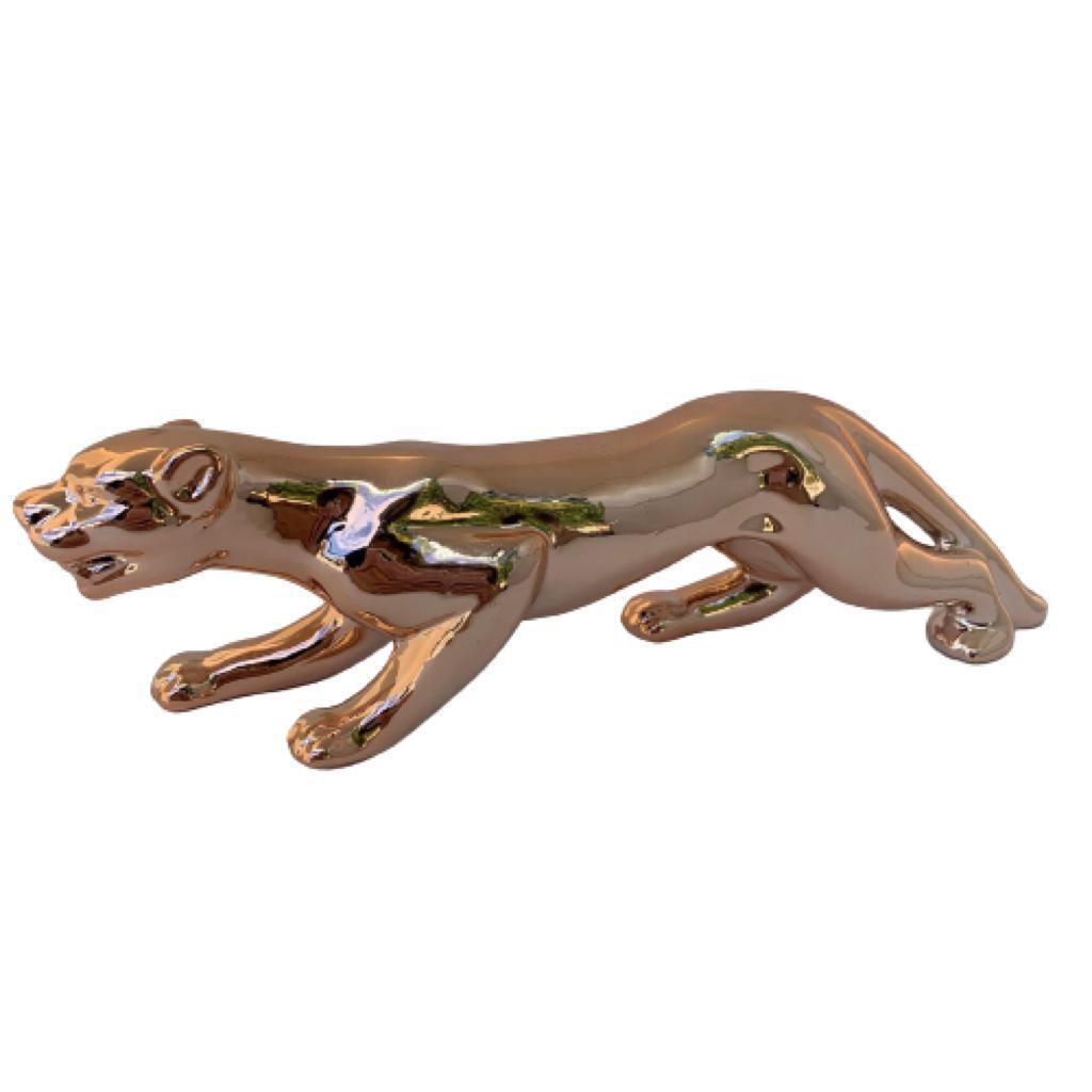 Enfeite Decorativo Estátua Em Cerâmica Luxo Pantera 20cm Rosé Gold/ Prata/ Preto/ Branco