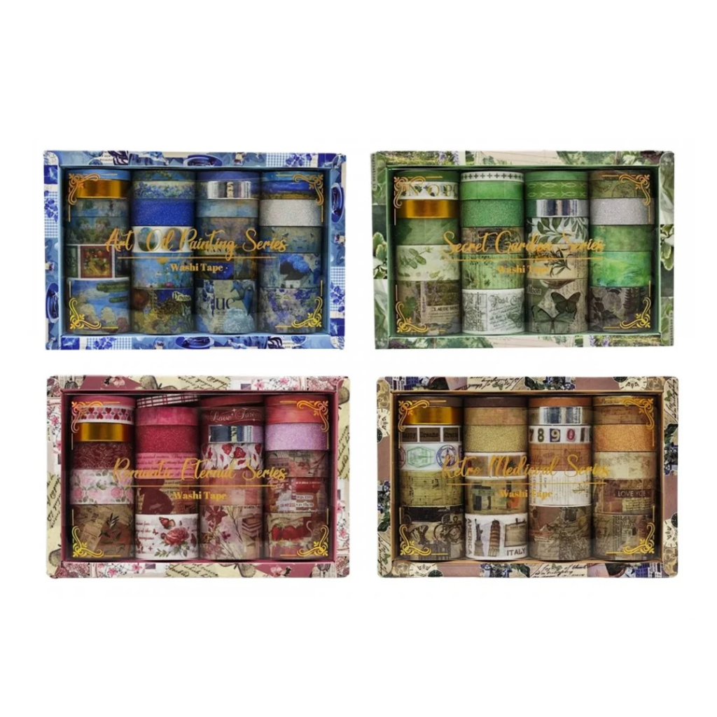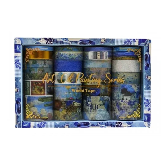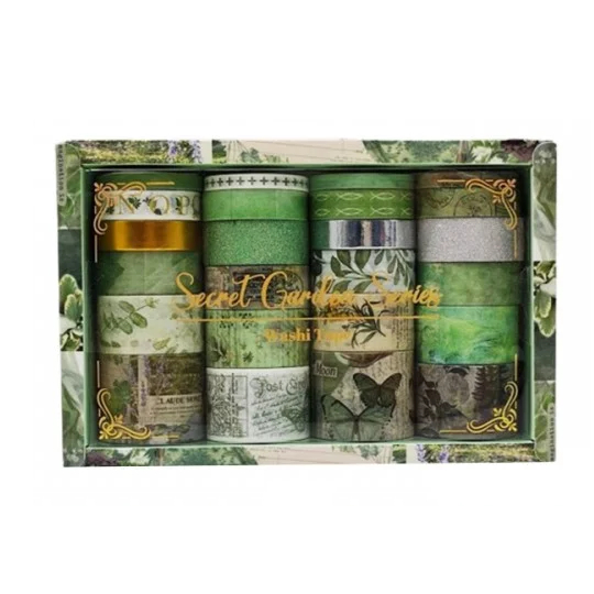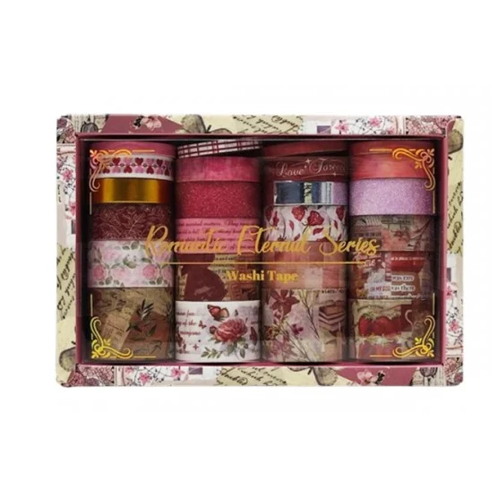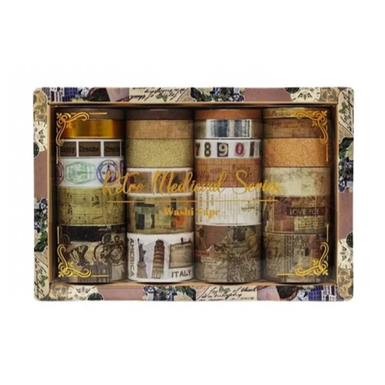 Caixa com 18 Rolos Fita Adesiva Washi Tape Estampada Para Scrapbook/Bullet/Journal/Planner/Agenda