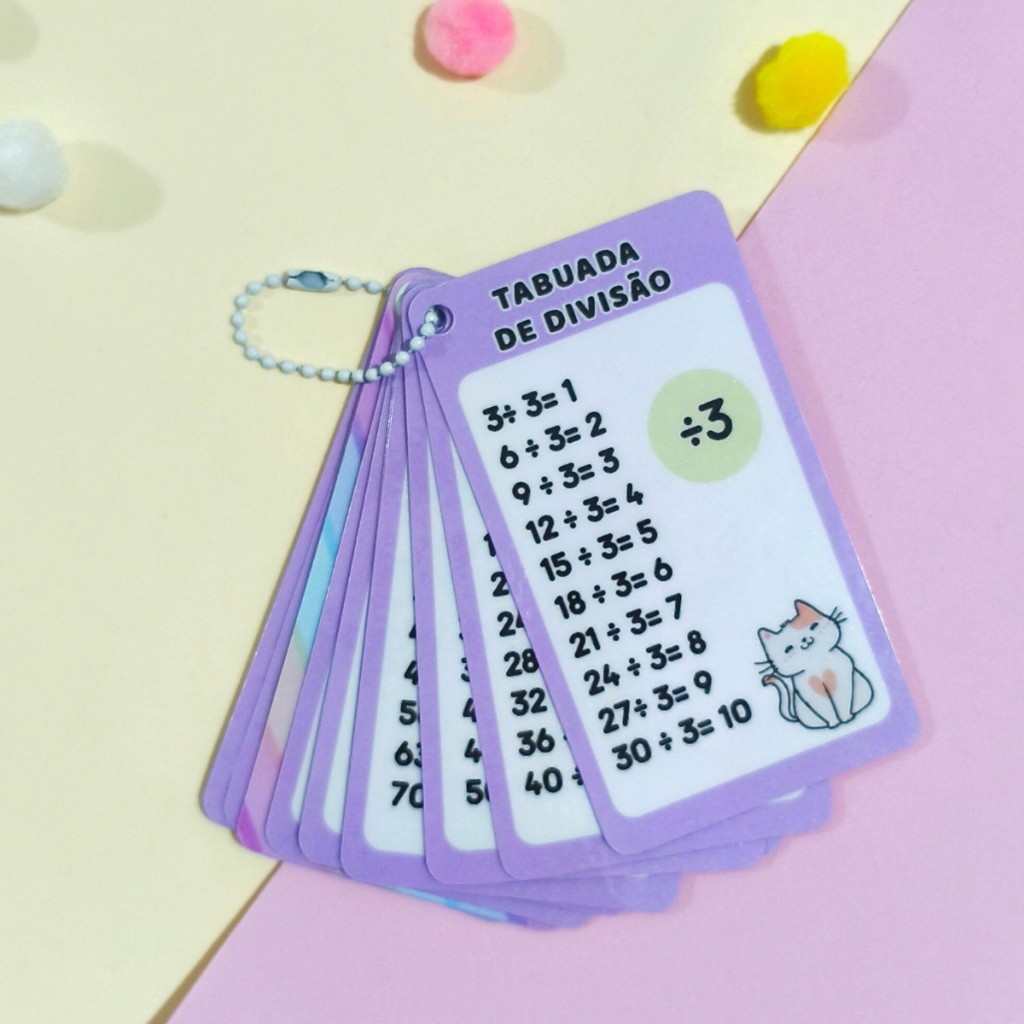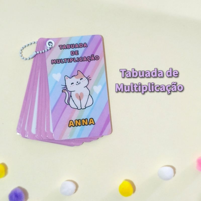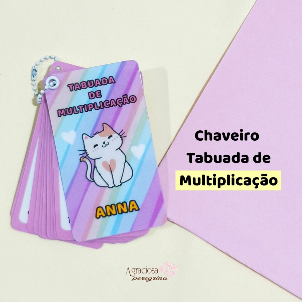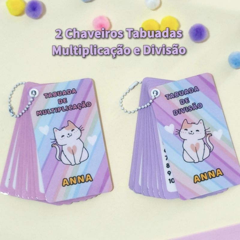 Chaveiro Tabuada Gatinho Personalizado Com Nome | Multiplicação e Divisão | Educativo Escolar