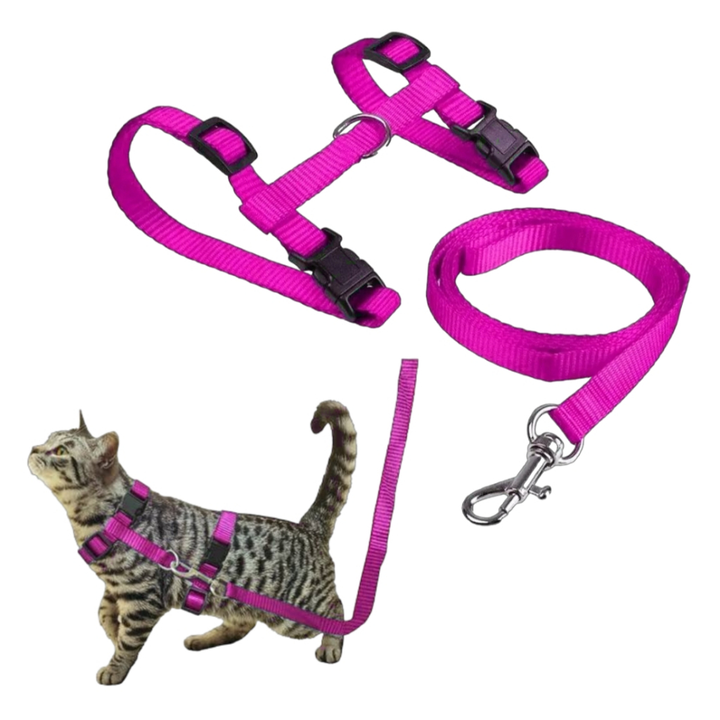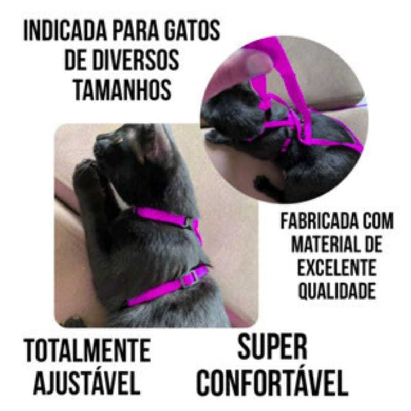 Coleira Peitoral Com Guia Gato Pet Shop Ajustavel E Guia