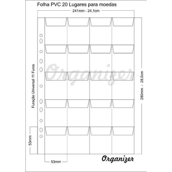 15 Folhas PVC 20 bolsos para Moedas Com Aba Organizer