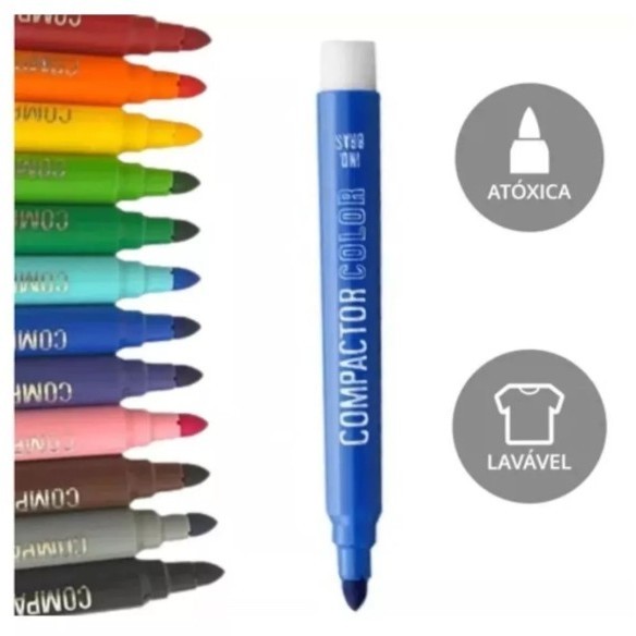 Canetinha Hidrografica Compactor Color Jumbo 1-4 Mm 6 Cores / 12 Cores