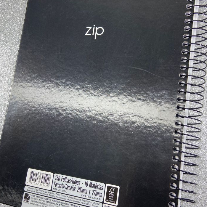 Caderno Universitário 10 Matérias Zip Preto com 160 Folhas Tilibra
