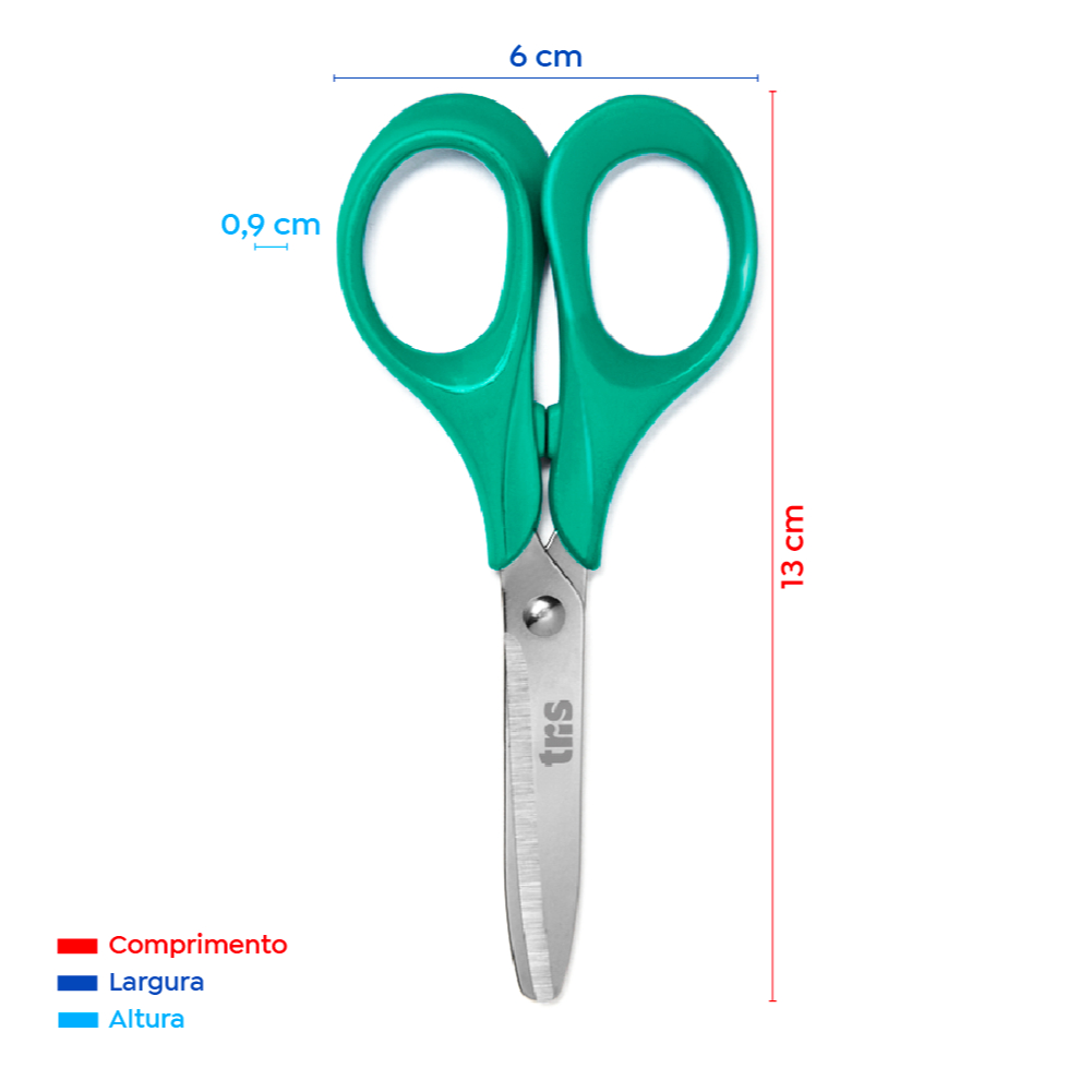 Tesoura Escolar Tris Class 13cm – Pontas Arredondadas, Lâminas Inox, Cores Sortidas