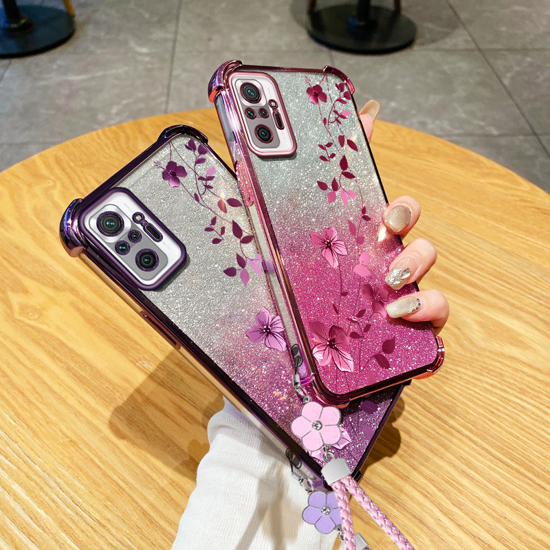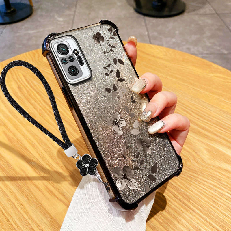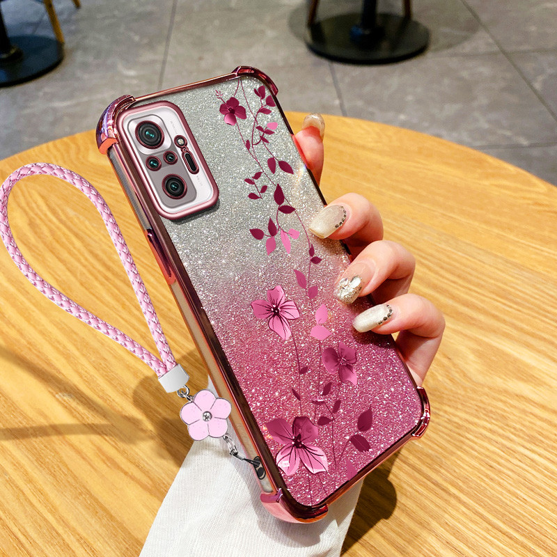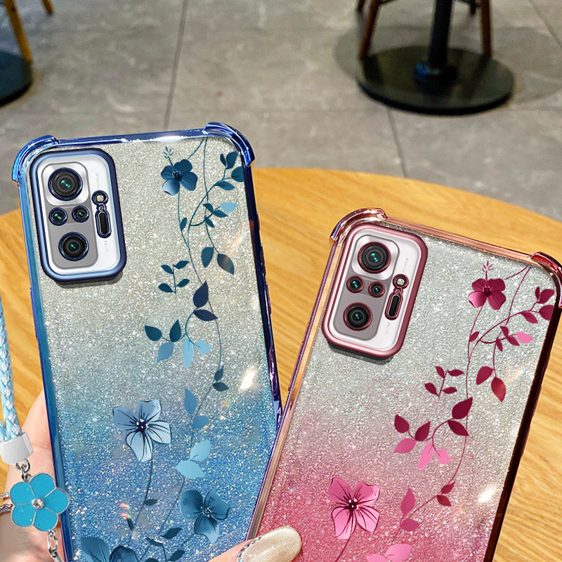 Para Xiaomi Redmi Note 10 10S 10T 4G 5G Pro MAX Poco M3 M5S Planta De Videira De Escalada Com Flor Pendurada Corda Capa