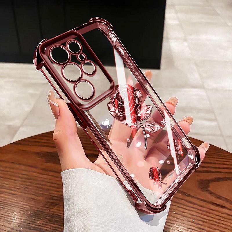 Capa De Telefone VRQR Para Samsung Galaxy S24 S25 S26 Plus Ultra FE S24 + S25 + S26 + Invólucro Elegante Rosa Lótus Tran